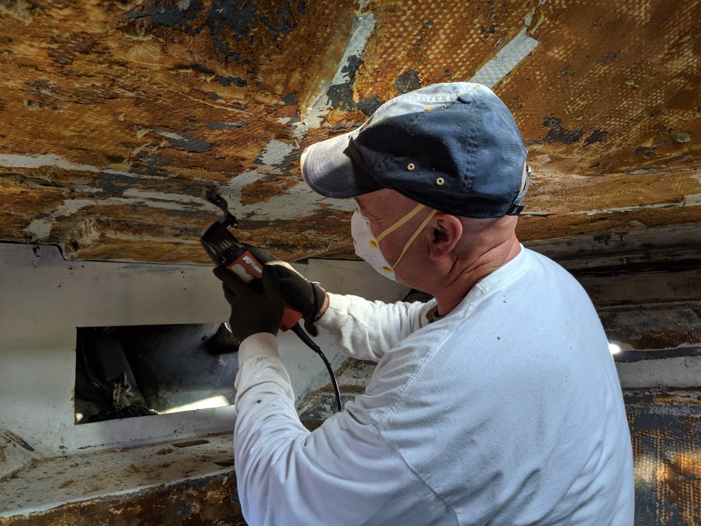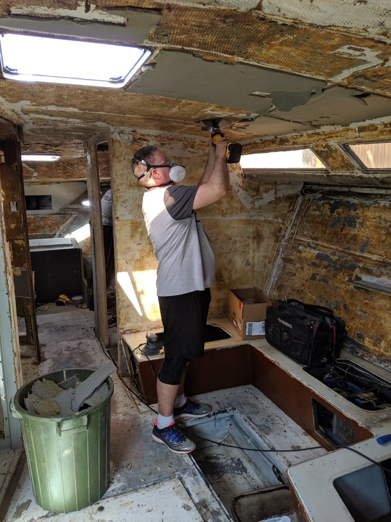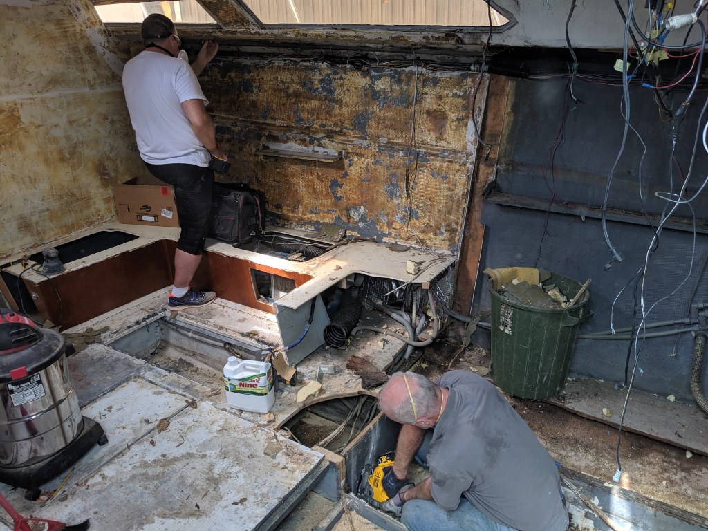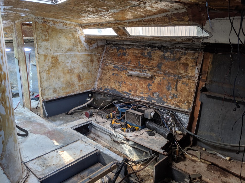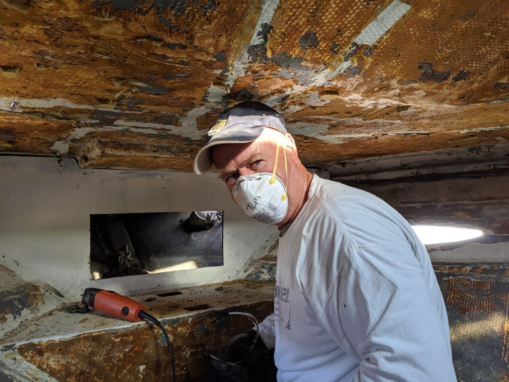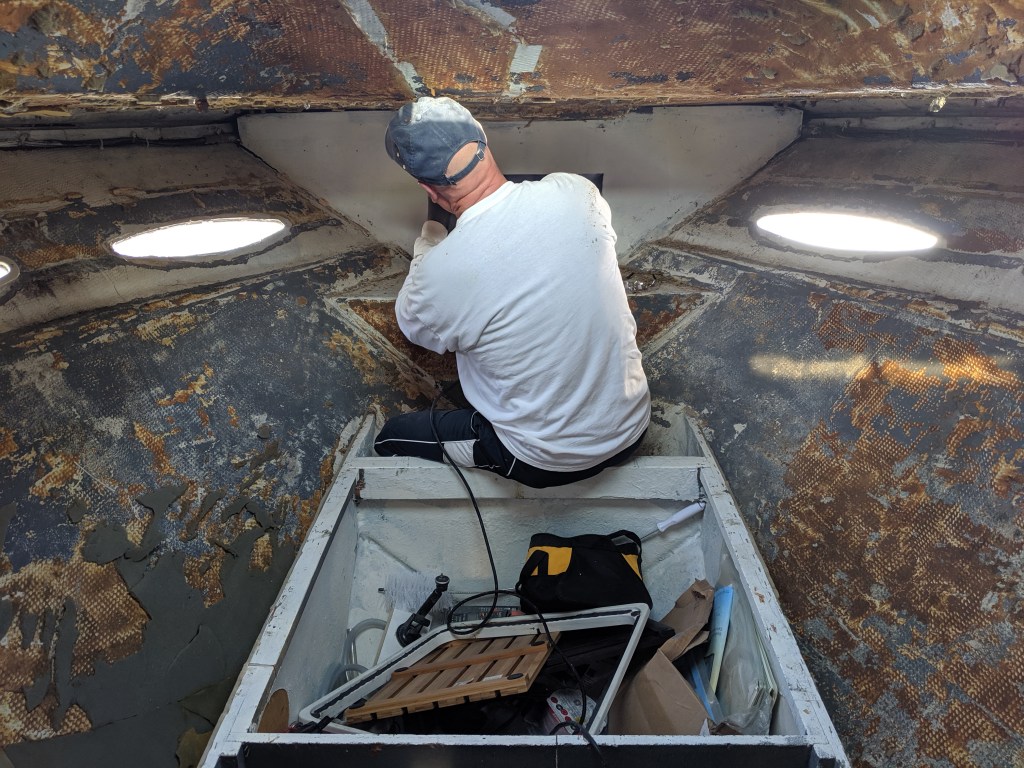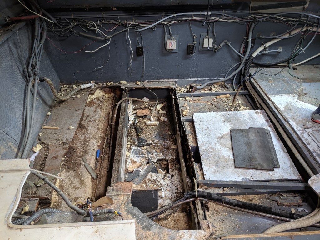 We were going to get so much done. I mentioned to Donald we should take up the floor in the galley thinking we would gain an inch or so in height. What we found was this…