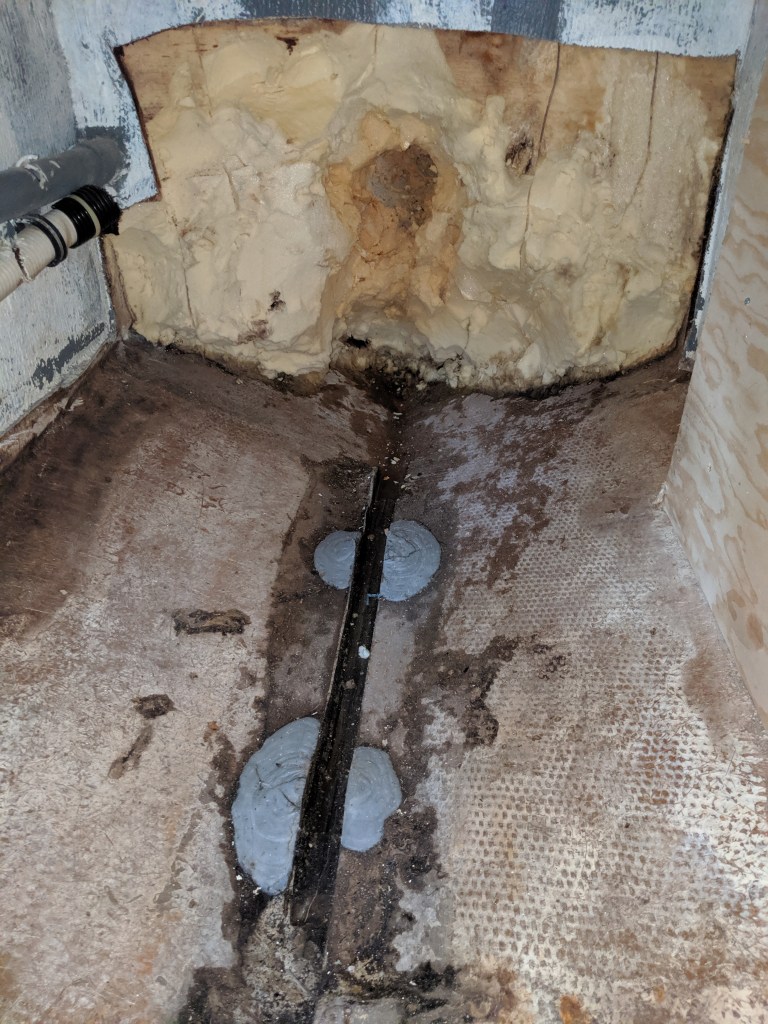Now it’s out and I have a couple of fans on it to start removing the remaining water that has saturated the bottom couple of inches of the expanded foam insulation. I figure it will take a week or so to dry it out