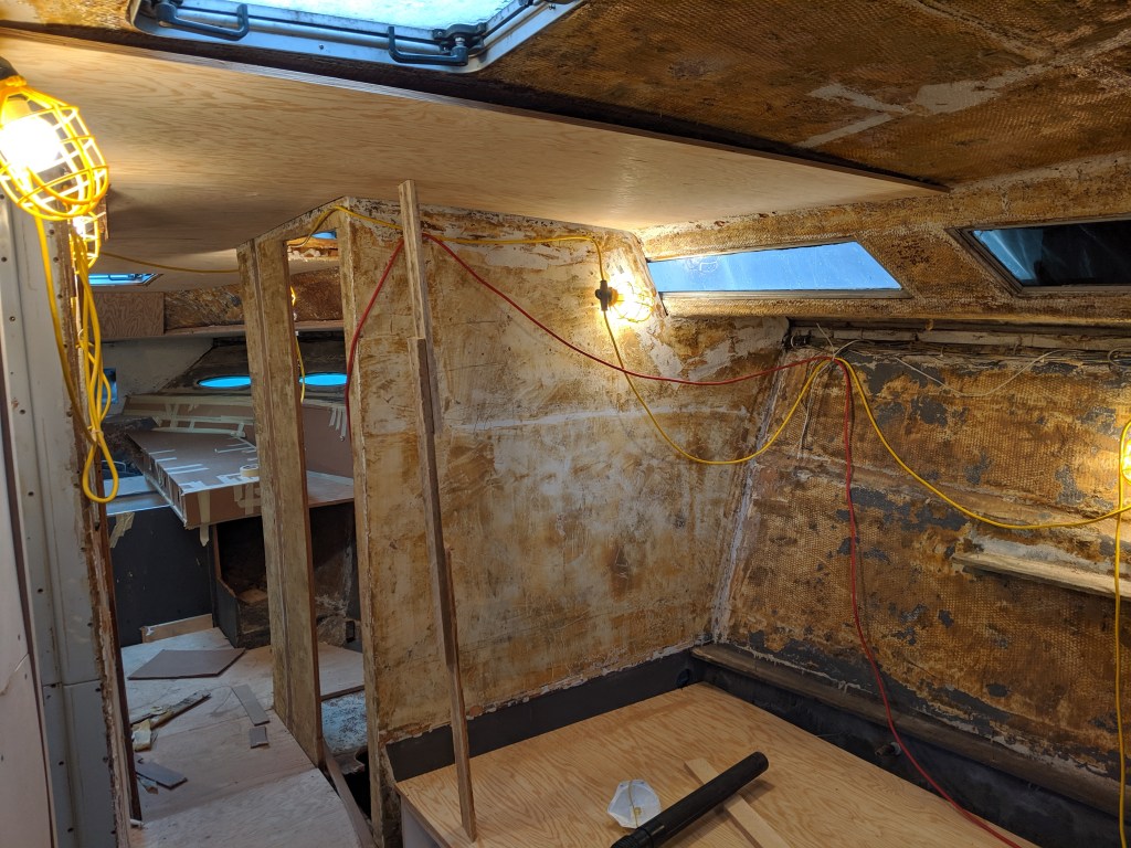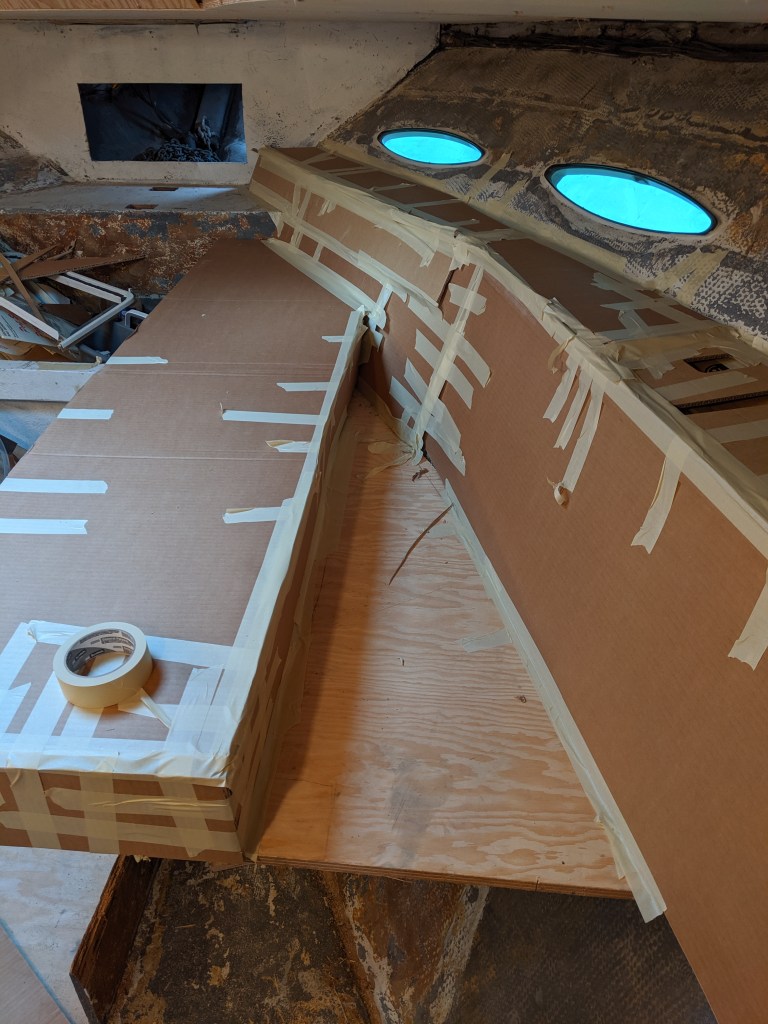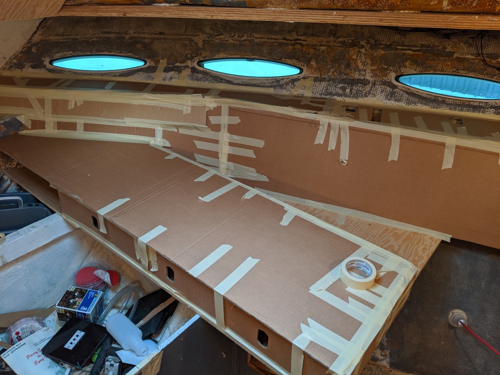 I realized today that cardboard and masking tape are probably two of the most underrated and unappreciated building materials out there. Ok…that might be a bit of a hyperbole but they are valuable when trying to renovate the interior of a boat.