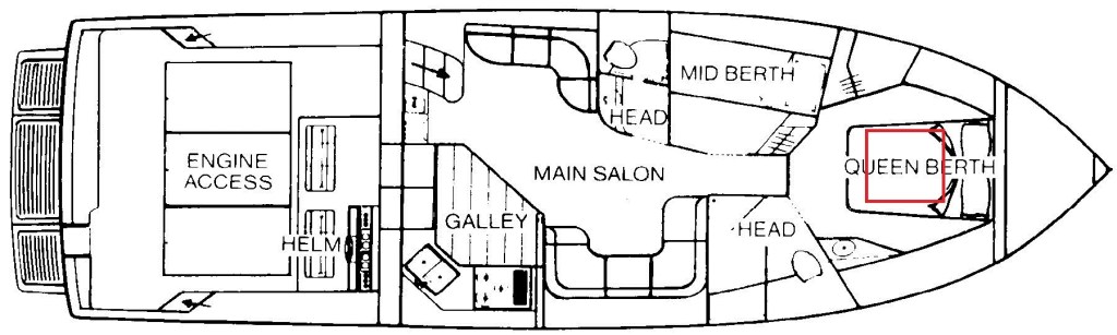 I have never shown the layout of this particular model and year. Here is what I am assuming are the original hand drawn plans for the 1987 460 Express Cruiser. There were two layouts available around that time.