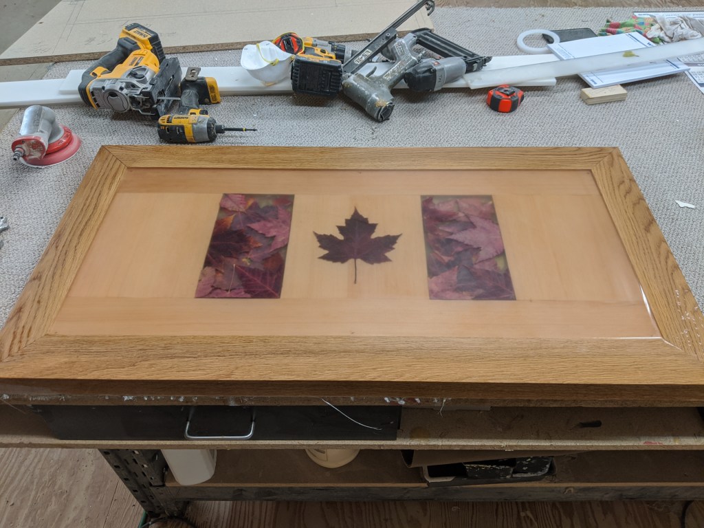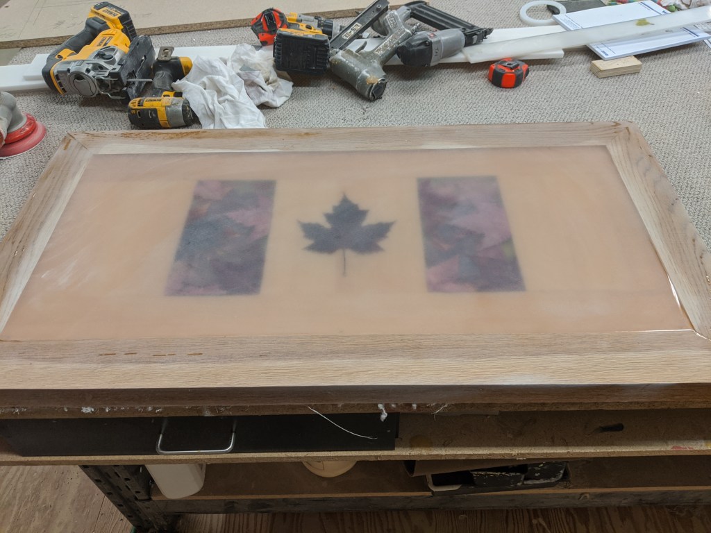 I did some more work on the Canadian flag table. I added a few more layers of epoxy and did a final sanding to level it all out. In the next few days I will pour the final layer.