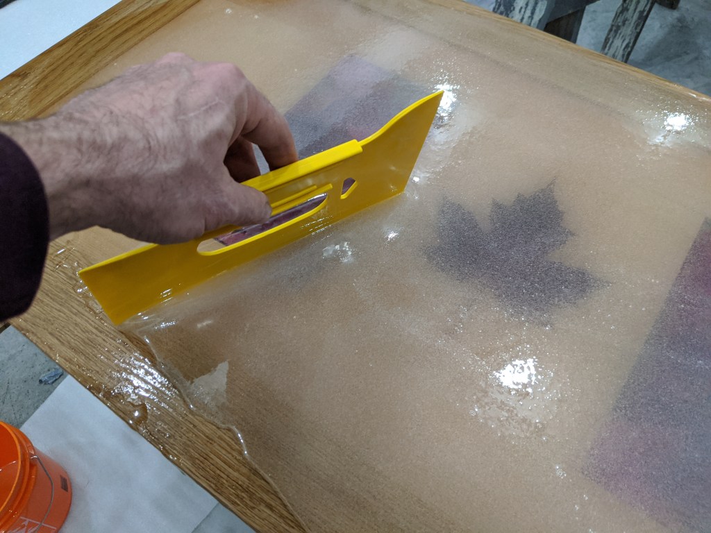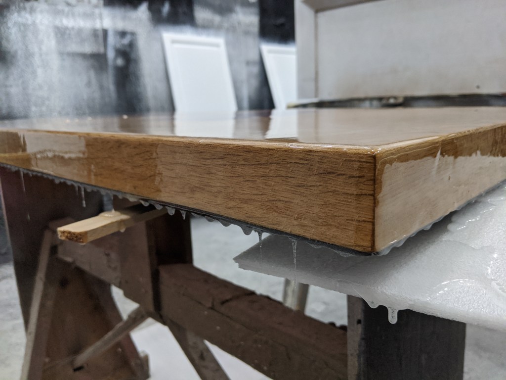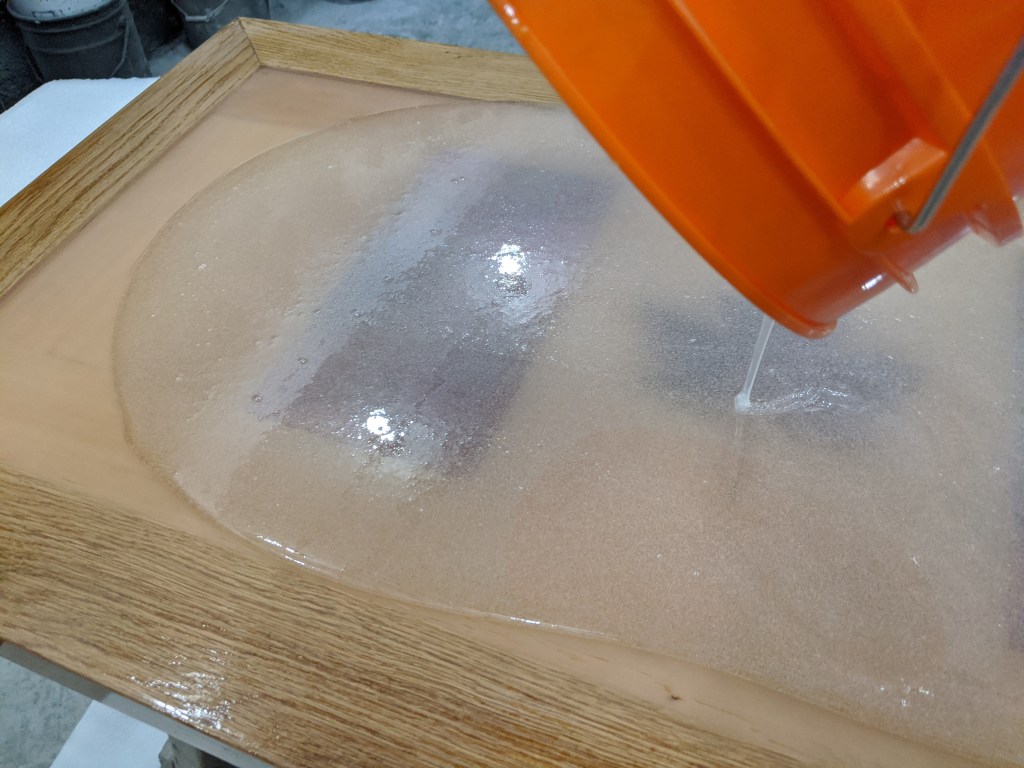 Here you can see the extra epoxy drip down the edges as it settles on the surface.