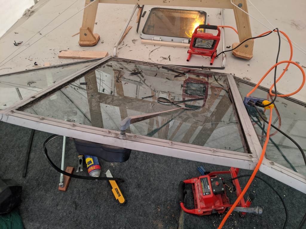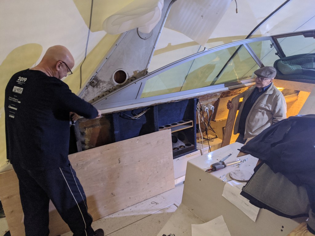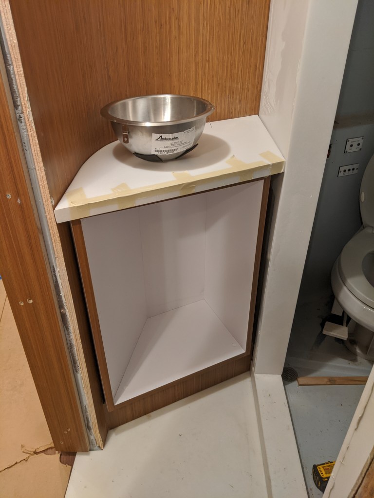 Donald also filled in the top of the opening to the head from the mid-berth. Now I can order the glass to fill that in.