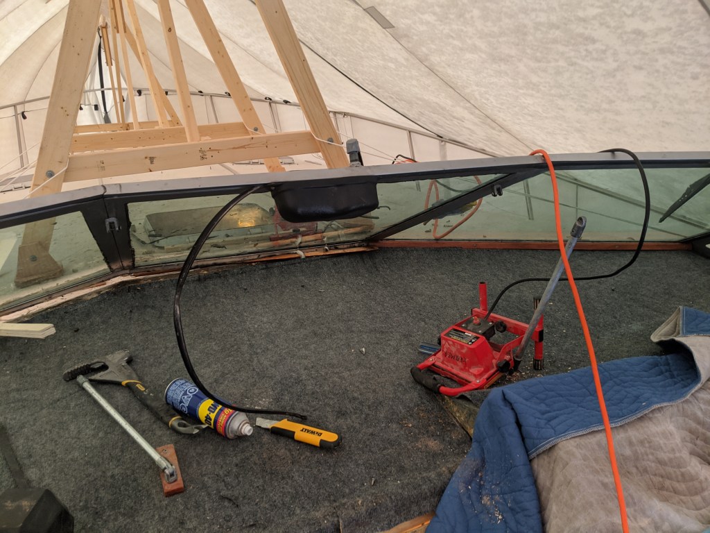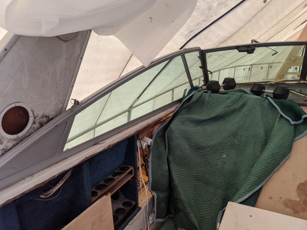 We started working at dismantling the windshield so it can be refinished and we can replace the glass. There were 5 screws at the bottom of each of the 5 front sections and 4 of the 5 came out easily. 1 out of 5 was stripped.
