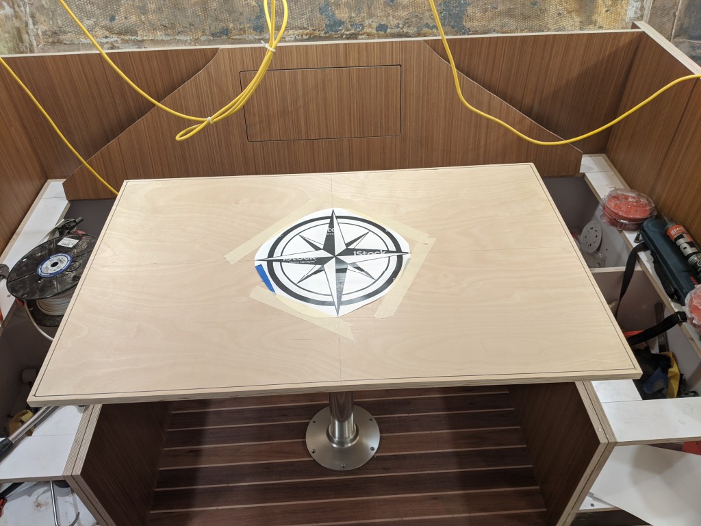 I was able to make a mock up of the table for the eating area. We will be having a custom table made with a compass rose inlaid in the top with veneer.