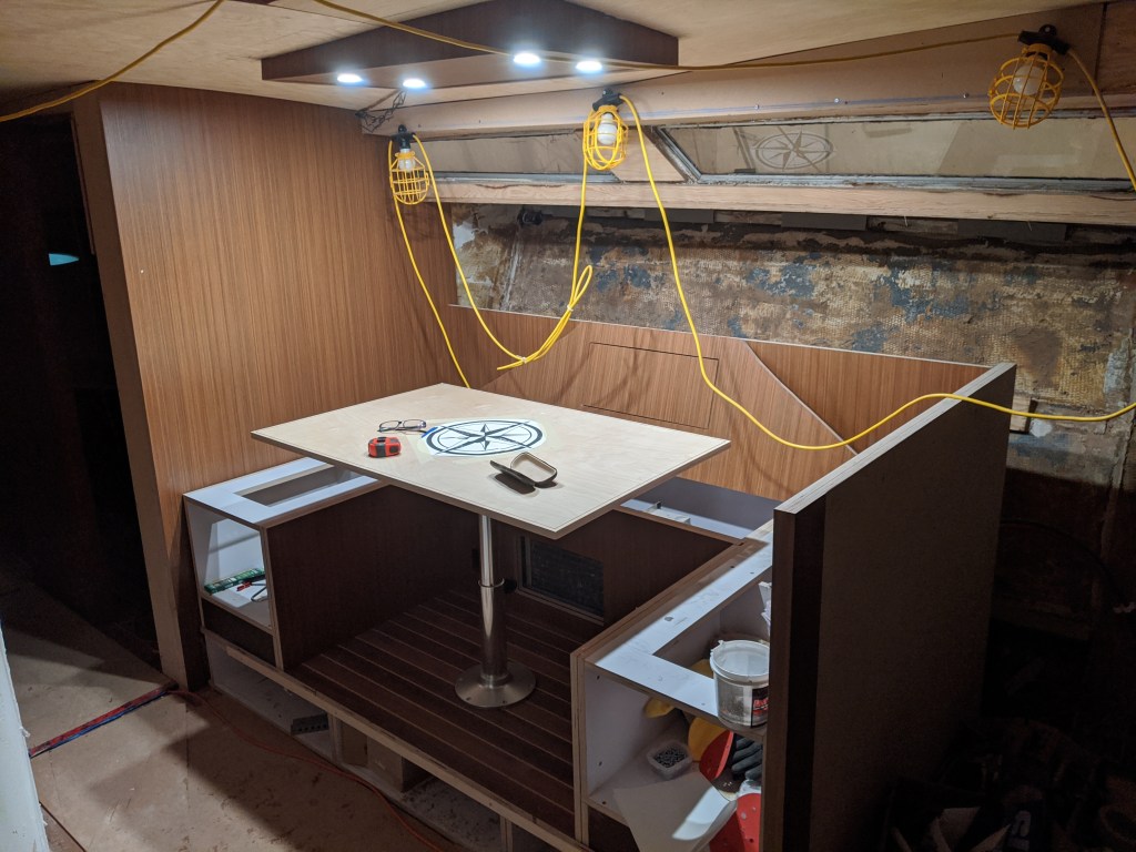 He had some issues matching the starboard side of the v-berth to the port side and ended up taking most of the day getting it right. He eventually did.