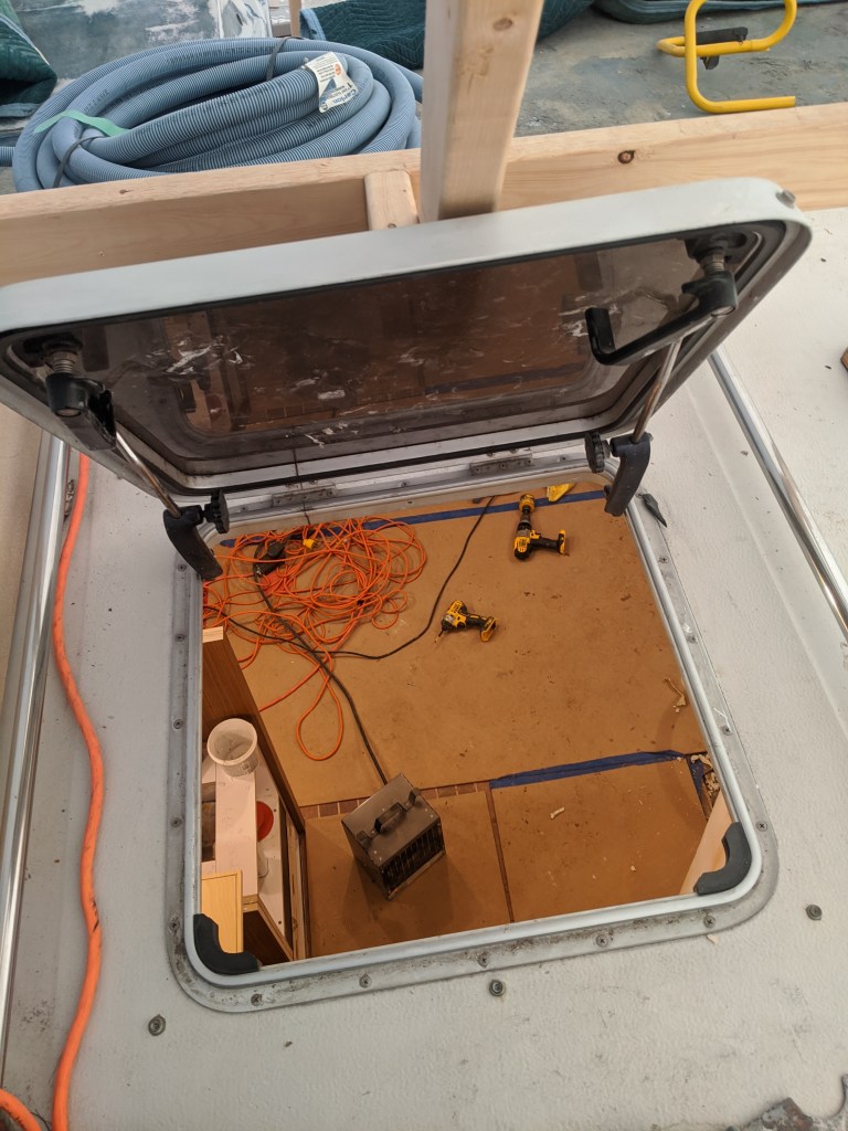 This area will be finished off next weekend. At that point we can start working on the panels for the headliner. We are hoping to have the v-berth completed in about 3 weeks. This area is easily the most complicated area to finish off..