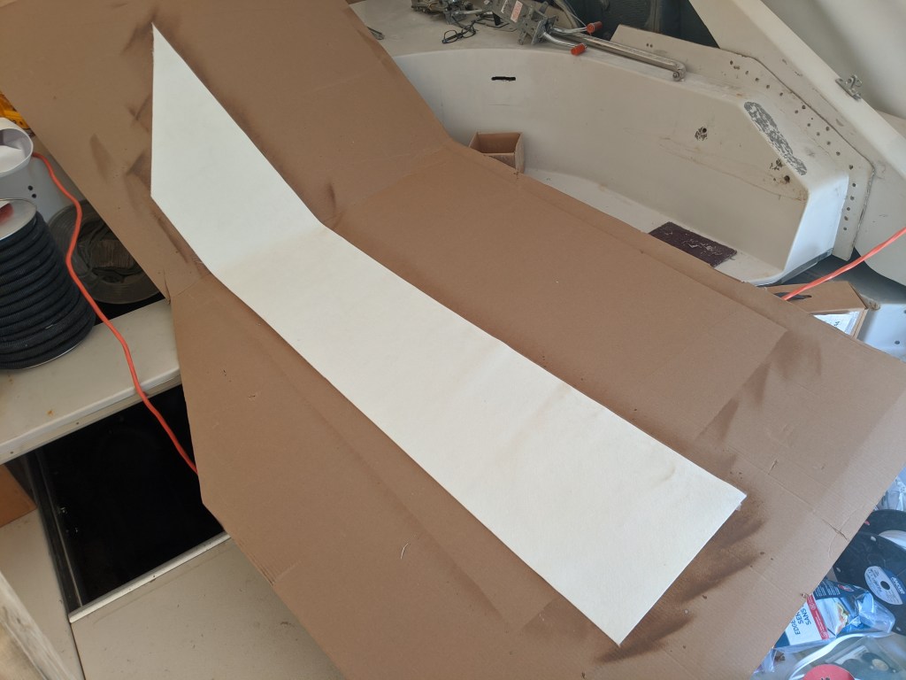 I cut the pieces for the angled panels slightly large and applied the 3M adhesive in the boat.