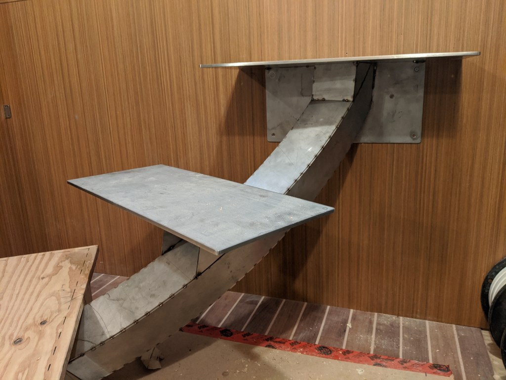 We were able to pick up the stairs from the fabricator today to make sure the steps are working out. Two of them have been welded into place and the last one will be done on Monday. Donald is building a small cabinet to the right of the fridge so we wanted them in place to make sure it will fit.