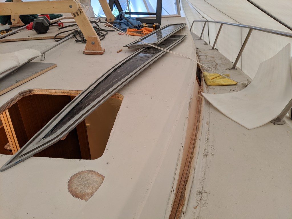 Now that they are out this will give me a chance to clean and polish the gel coat around the window openings.