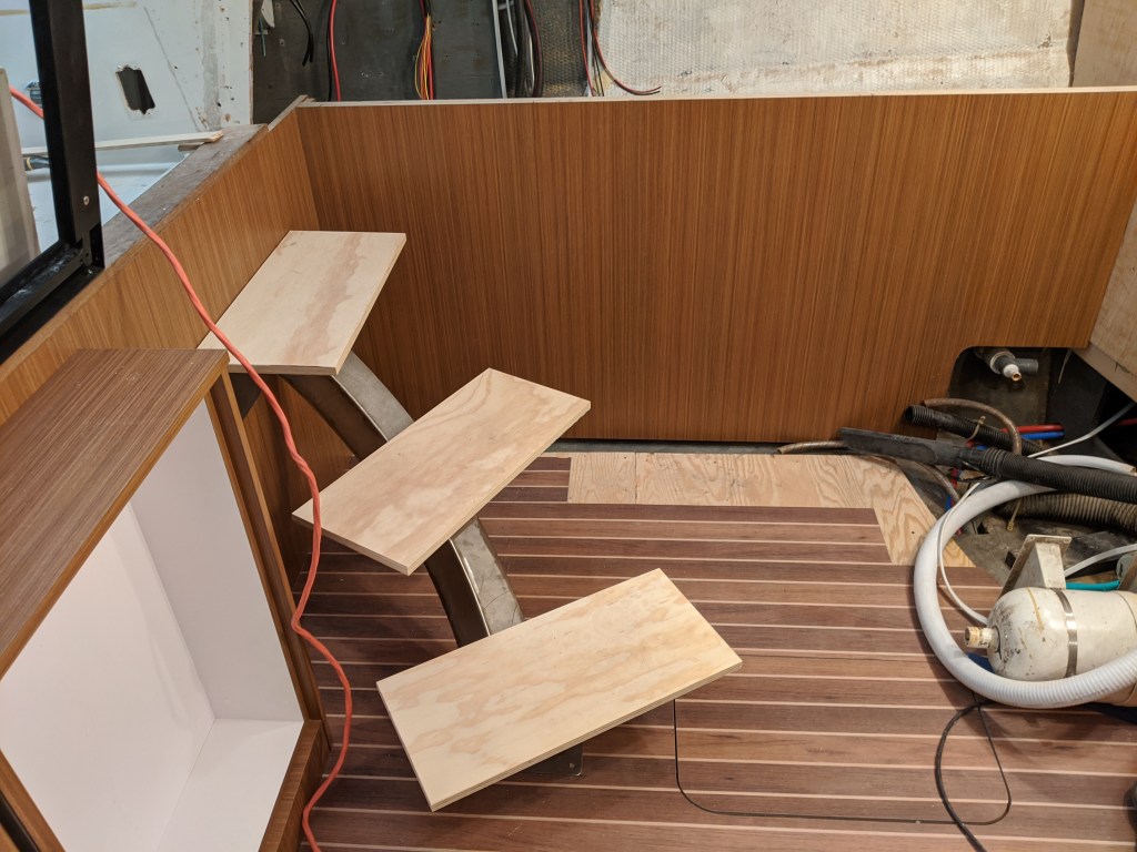 The plywood steps are just temporary. We won’t install the Ipe steps until we are finished the interior.