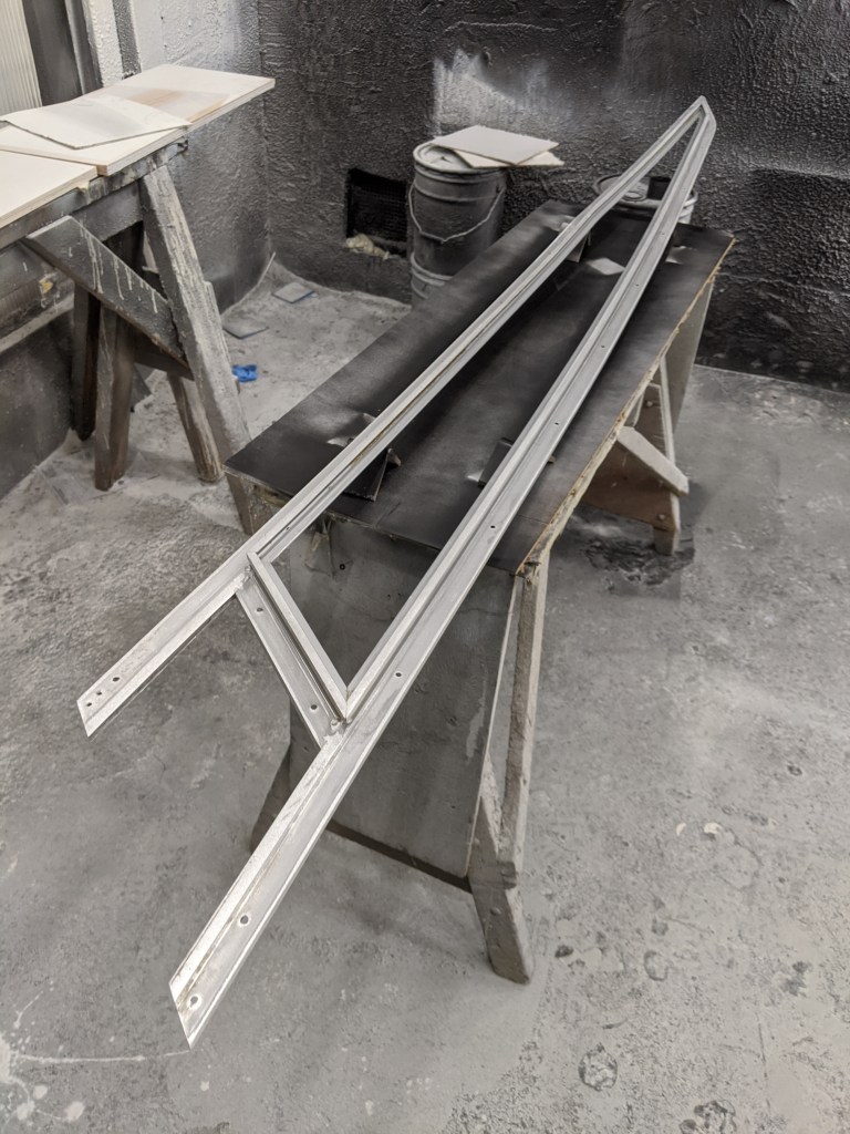 We had originally planned on having the port and starboard windows powder coated but I decided to finish them myself using Trem-clad. A semi-gloss black. I am banking on this being a very durable product that I can easily touch up in place if needed.
