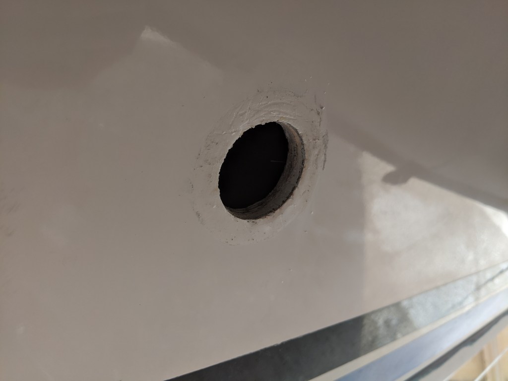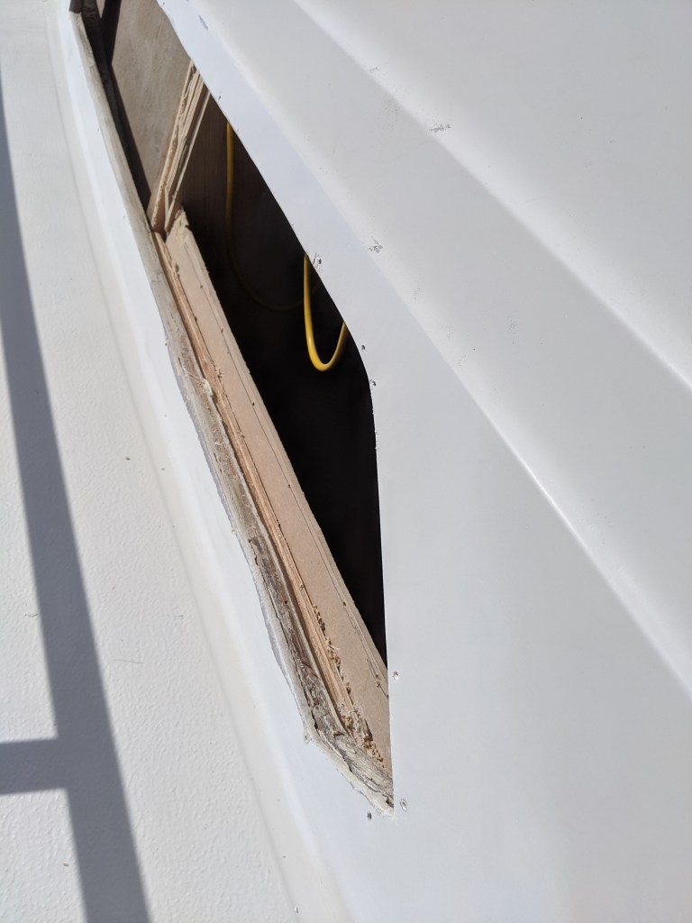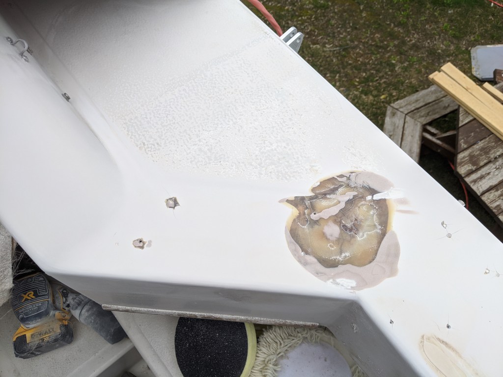 The one issue that I will be facing is the new gel-coat colour doesn’t match the finish on our boat. We checked this panel against a newly buffed area on the transom and this is slightly darker. If there is anyone out there with a suggestion on what to do I would appreciate any input.