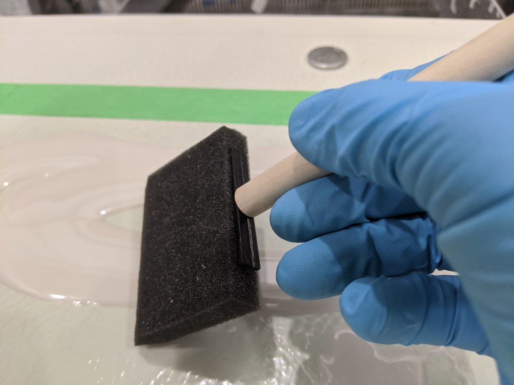 I left this to dry for a couple of hours and the next step was to paint on a thick layer or gel-coat. It needed to be thick so that it would get into the deeper pockets of the surface.