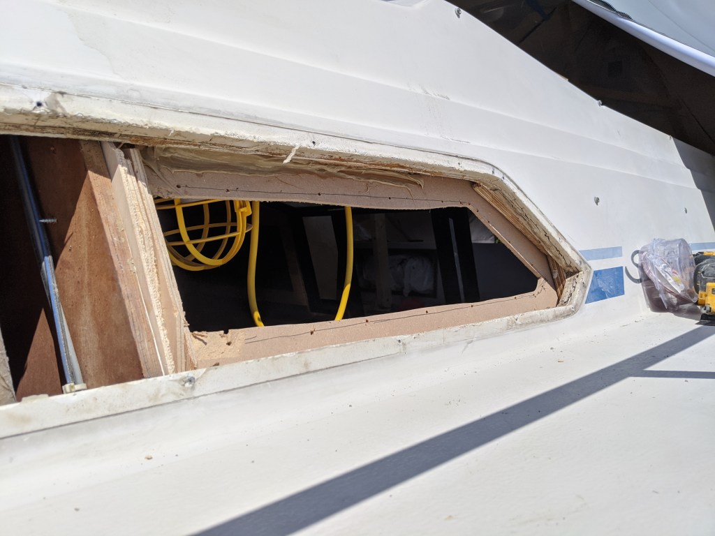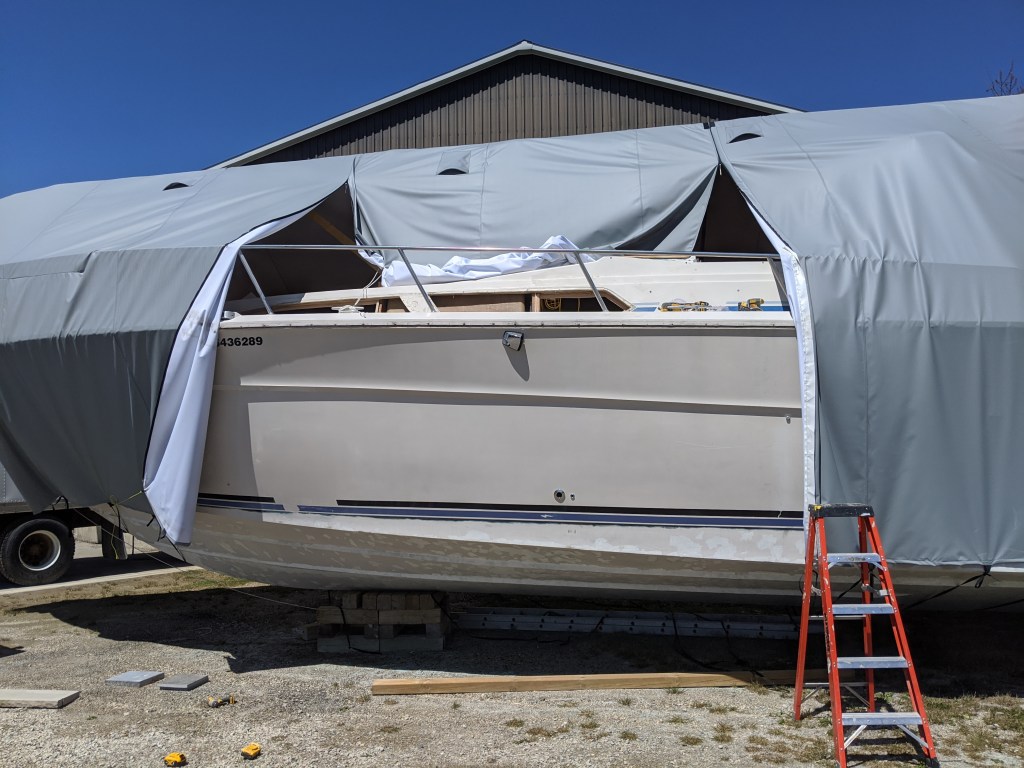 In order for the side windows to go in next week I had to start prepping the openings. Luckily it was a beautiful day and it was great to open up the winter cover and work in the sun.