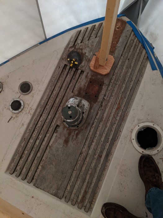 We also decided to throw caution to the wind and get Becky stripped down a bit for spring by removing the bow section of the winter cover. It may have been the weather but after we took it off it felt like we were actually going to get this done in time. Almost as if we passed a huge psychological hurdle.