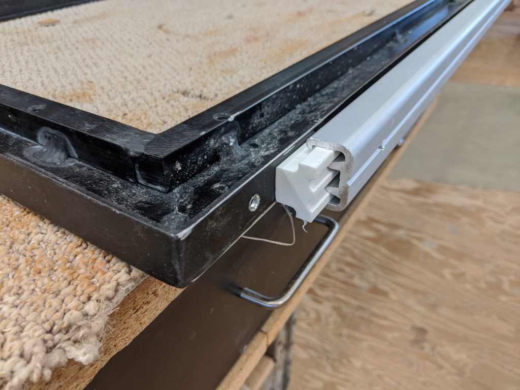 I ordered a new sliding door track and it arrived this week. I took a chance based on some photos on line and was really hoping that this one would work. Thanks to Ben at FP Marine in Florida for helping me out. It uses a couple of balls in the bottom track and glides in the top.