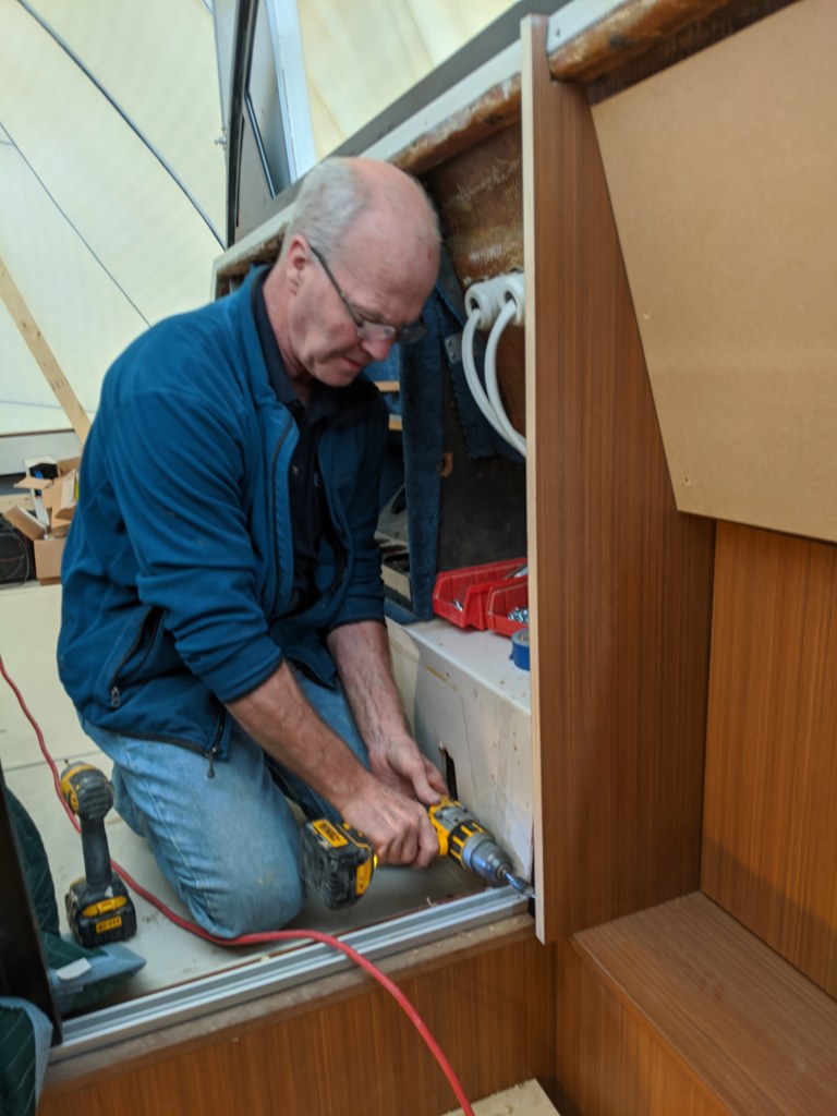 At the moment they are fastened into place with screws. Next week we will use some white Sikaflex to glue it down. This is a once and done thing. The next owner can deal with trying to take it off if they want.