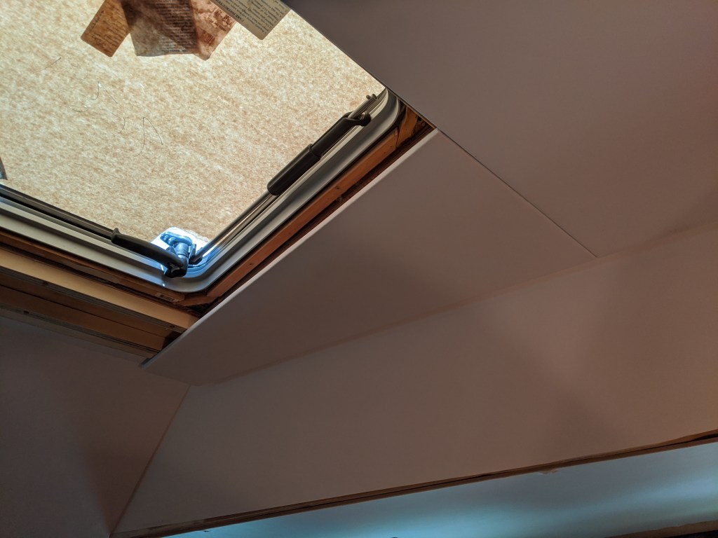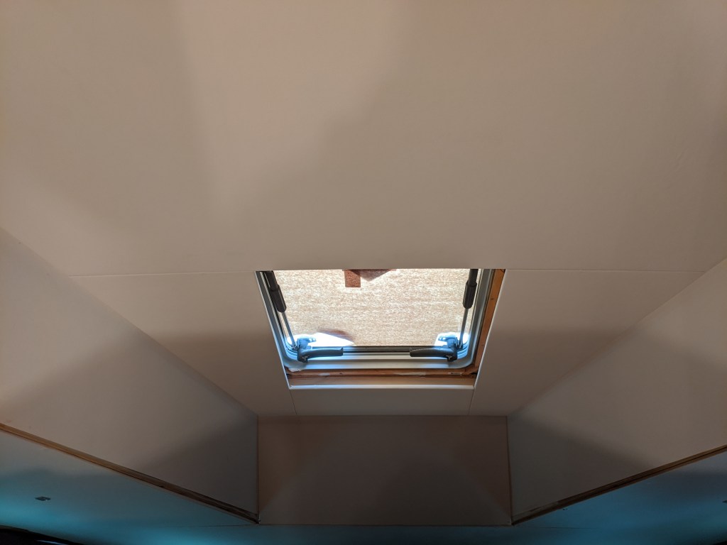 I was able to get back to working on the headliner in the v-berth and finally finished up the ceiling.
