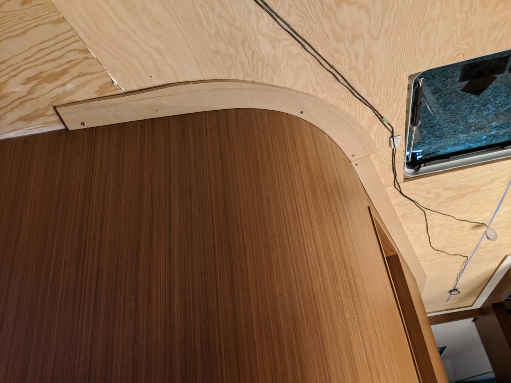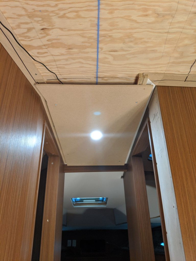 Monday was a holiday here in Canada (part of what is called the May 2-4 weekend…this is pronounced “May Two-Four”) and I had that day to work on the boat so I worked on the headliner. My plan now is to complete the layout first so, if we happen to run out of time before she leaves, all I had to do was the vinyl.