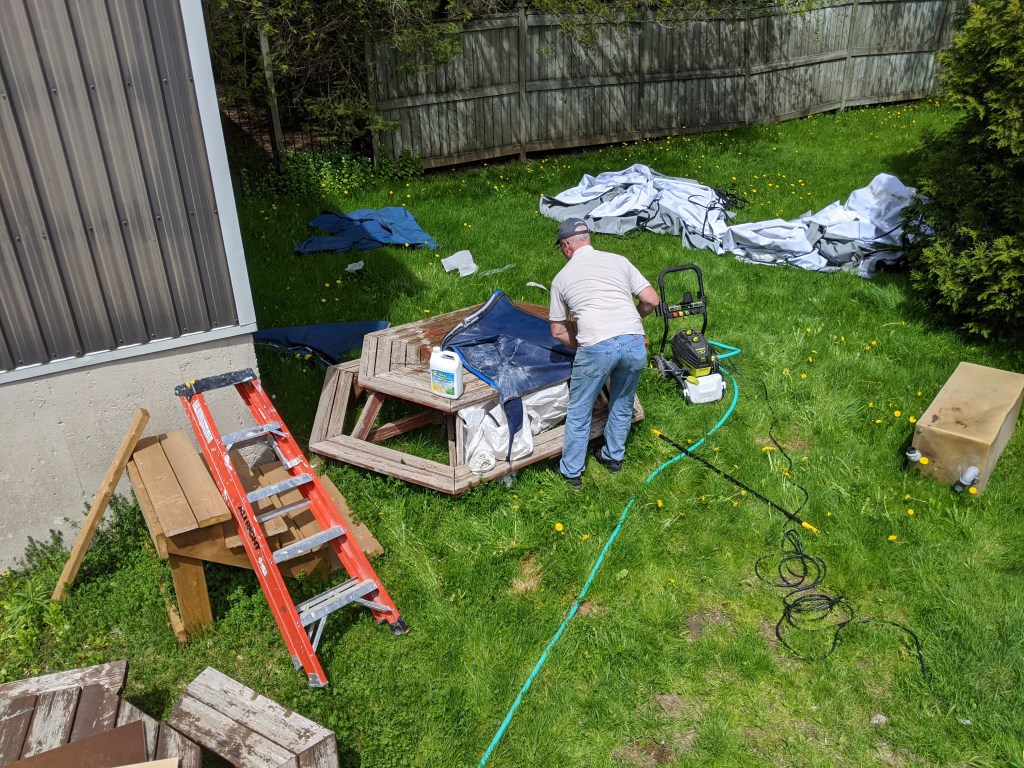 Donald used a pressure washer to clean away years of dirt. As he was cleaning the different sections we realized just how poor condition it was in.
