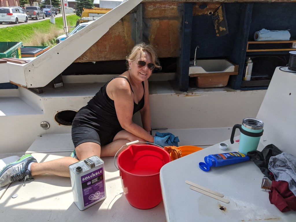 At the moment we have booked the week of July 6th to have a new bimini made and installed. This is, of course, contingent on whether or not the company that is making it has caught up on their backlog of work. It might actually be the end of July before it happens. Either way we will show up in Wiarton with a faded and leaky bimini…I know…first world problems!