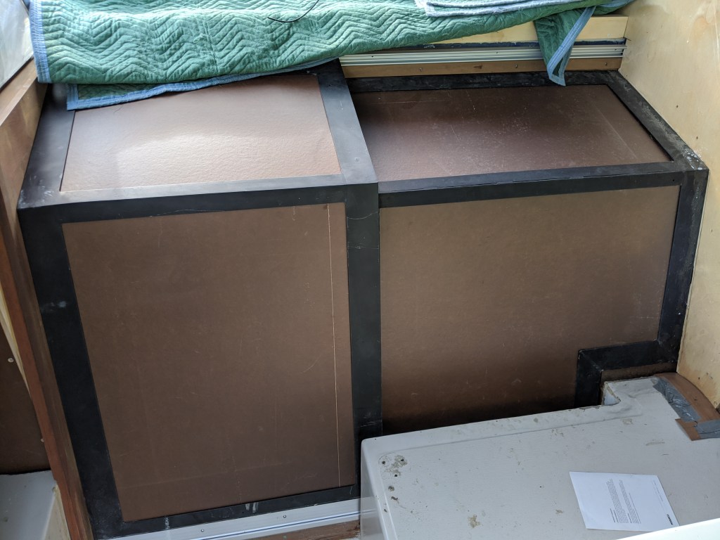 As I did in the v-berth this will be covered with white vinyl and will be part of the 1″ reveal along the walls.