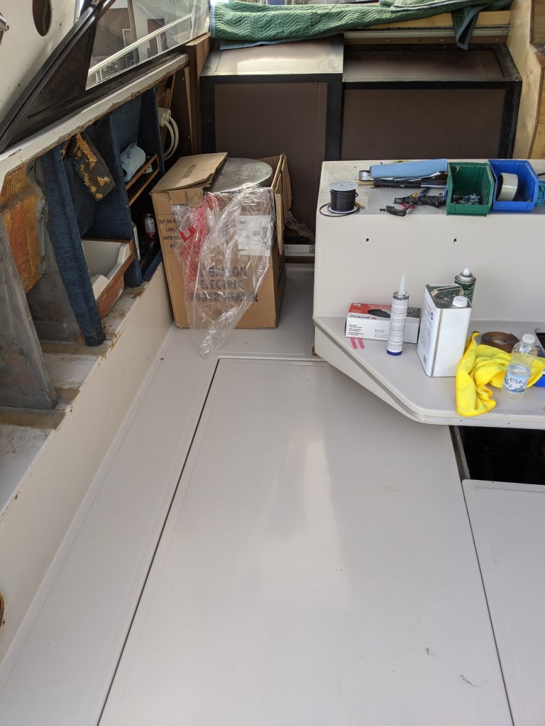 What I also learned from this particular leak was that this compartment is called the windlass chain locker and it has a drain. Never knew that. Donald asked me what keeps the water coming in through the windlass and I didn’t know. Once again the internet came to the rescue. Water gets in but is able to drain on it’s own.