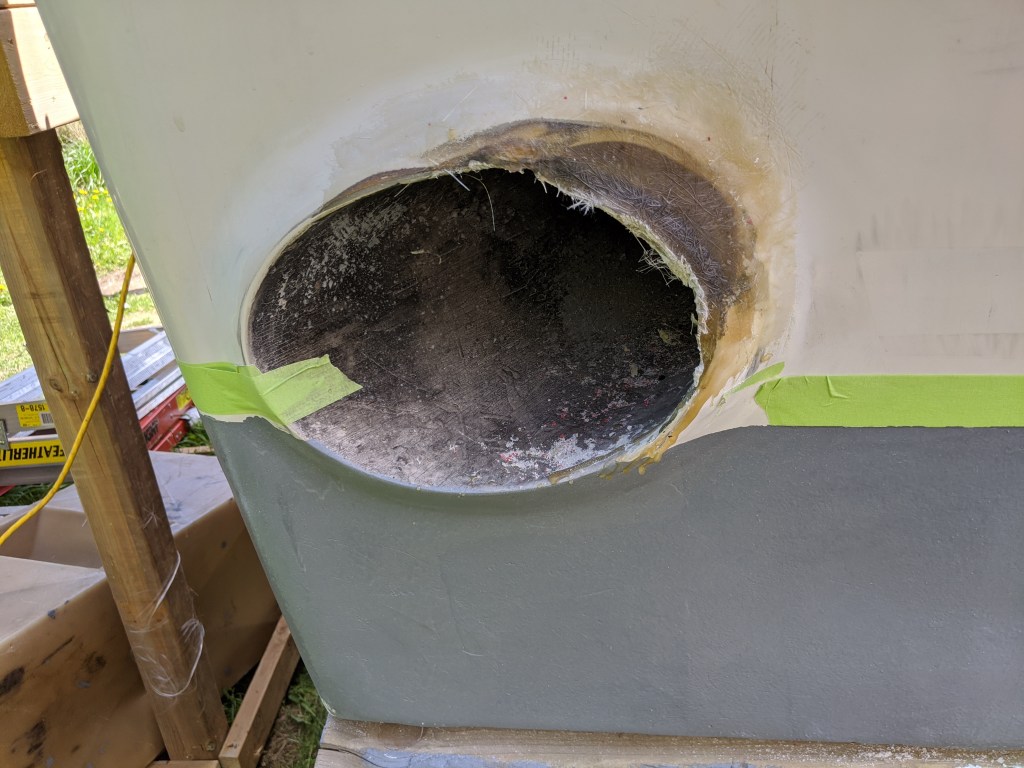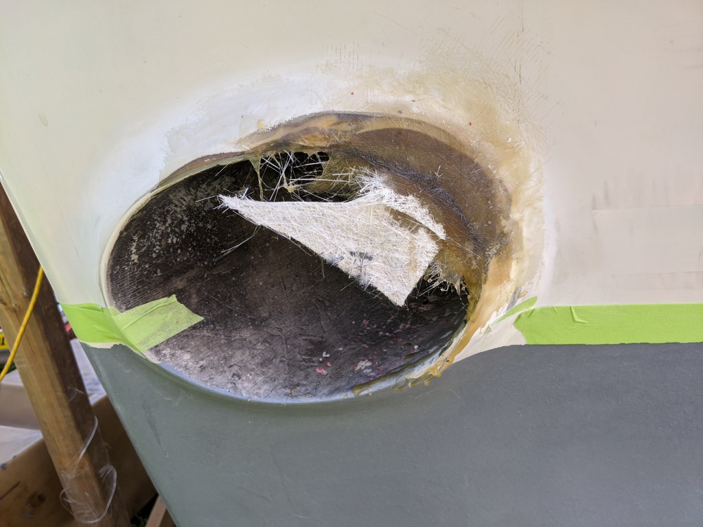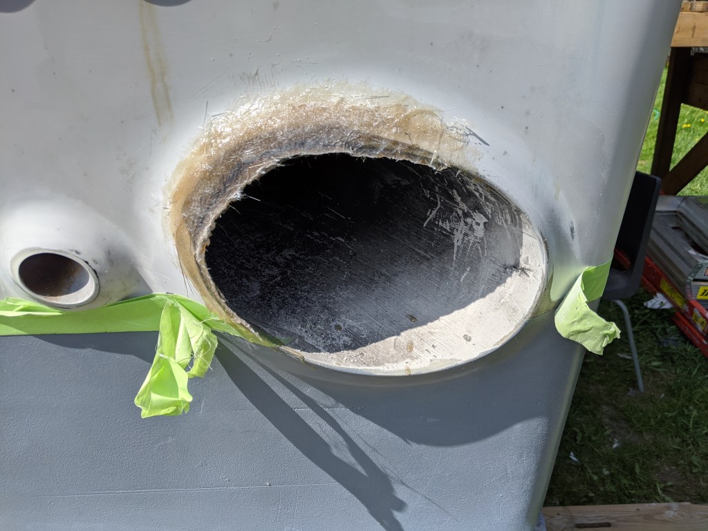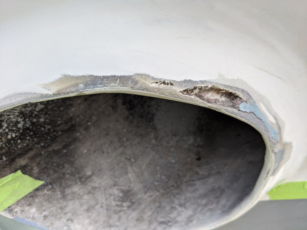 This is the starboard outlet before I sanded it. Someone had tried to do a bit of work on it in the past. I had to take it back quite a bit to get to solid material.