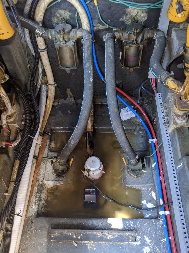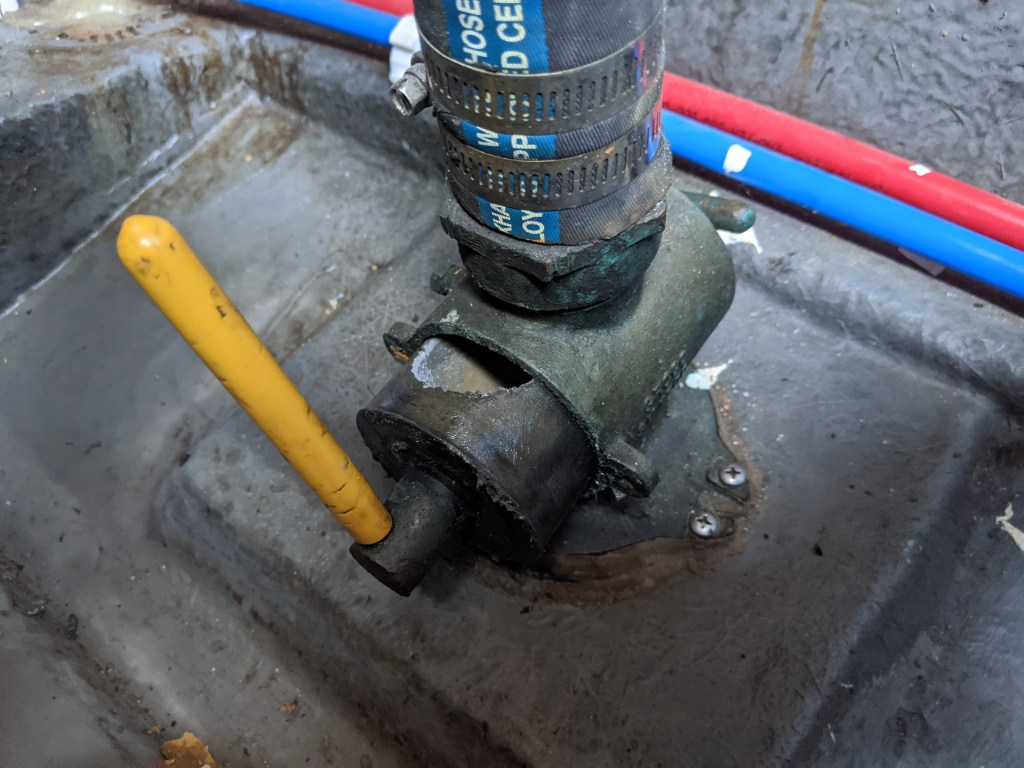 This is how the two seacocks for the engines looked when I arrived at the boat. Some of the water you see here was already in the forward bilge before we tried to put her in the water. I was too lazy to remove it.
