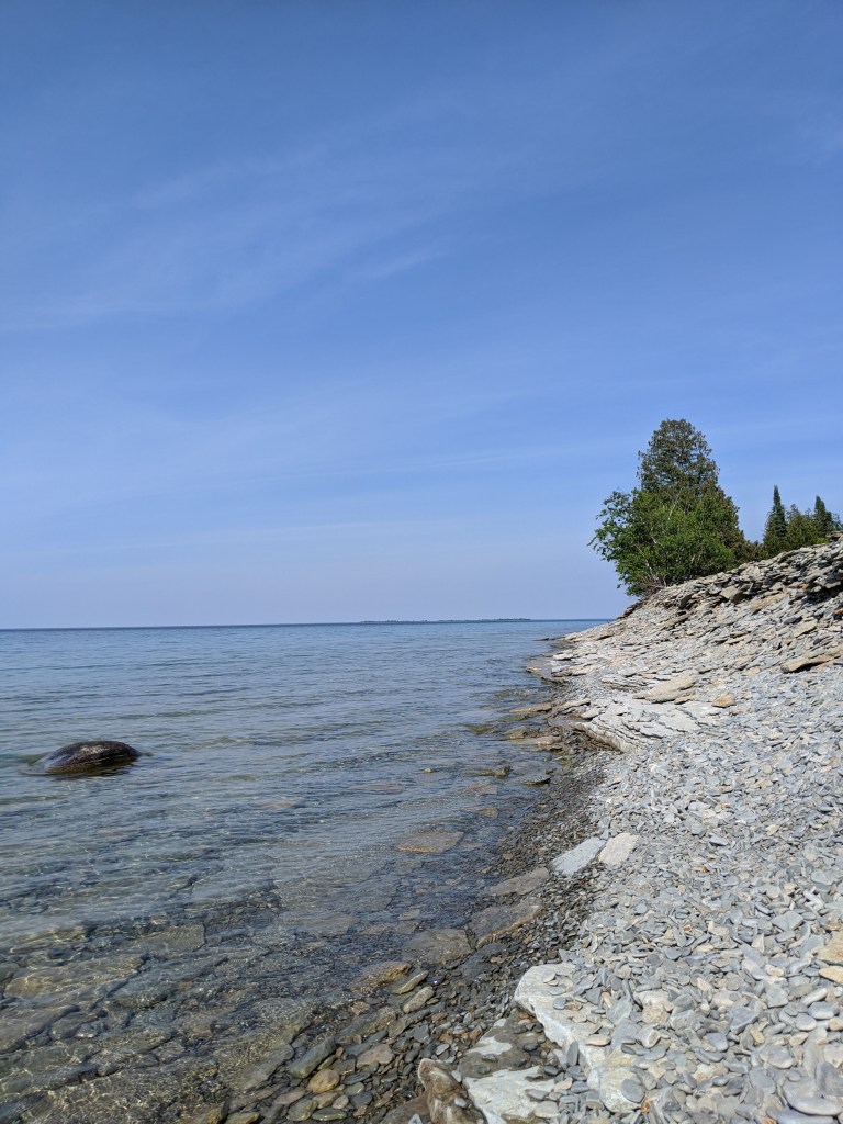I will be continuing this blog even after we are done with this renovation and plan to use it as journal of our time on the boat. To start this off, when I was finished work for the day and was able to walk straight, we took a quick trip up to a little town north of Wiarton called Lion’s Head. We found a small beach and just sat and listened to the waves. The water was incredibly clear and incredibly cold.