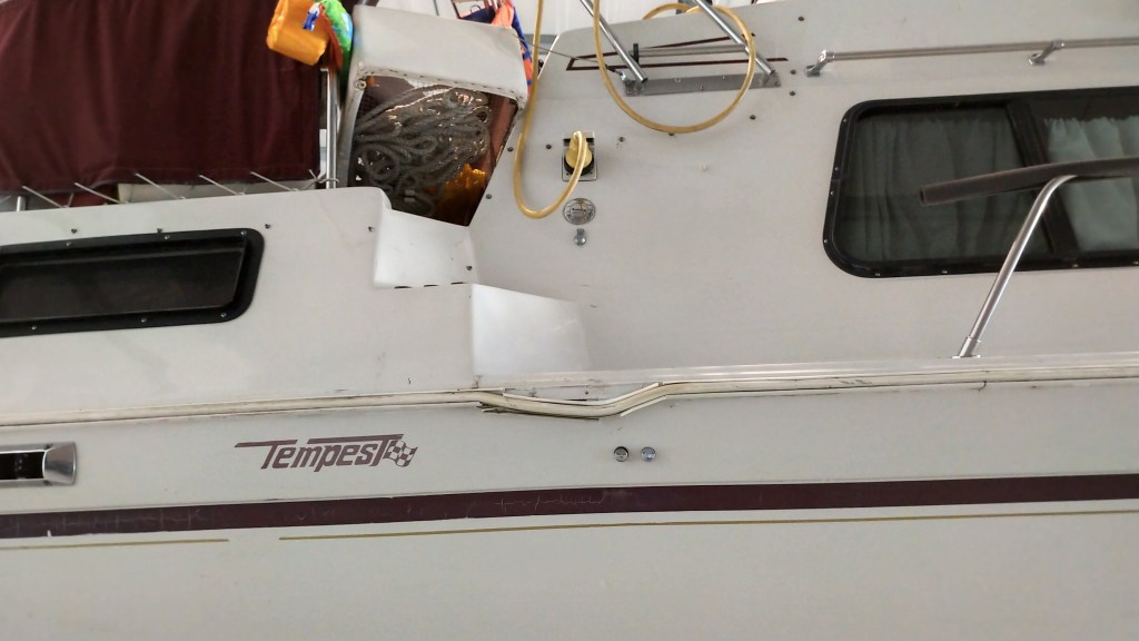 He received a call about 3 weeks ago telling him that his boat had been knocked off it’s blocking during a very intense storm the night before. There were other boats still on the hard but his was the only one that the storm took out. The initial assessment wasn’t great. He was basically told by a few “experts” that the boat would be a write off and it would have to be scrapped.
