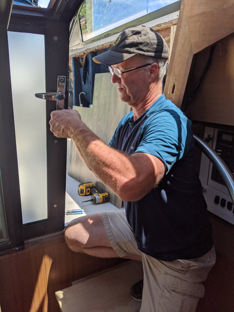 Among other things Donald installed some of the frosted glass panels in the sliding door and worked on the door lock. We have had some issues with it and aren’t entirely sure that it will work. Not sure that it is of the greatest quality.