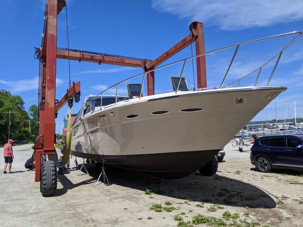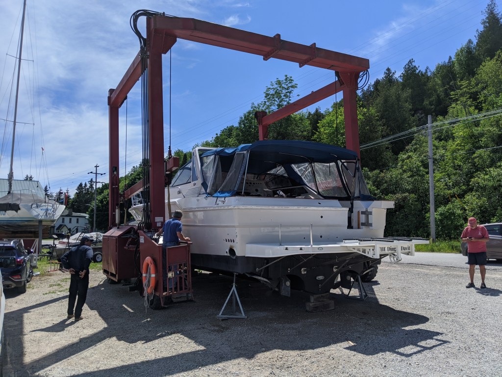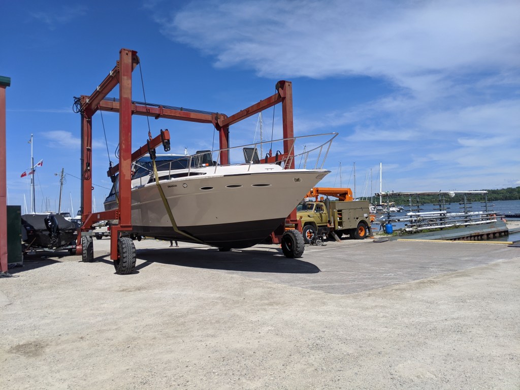 This will be a very quick post! It has been a very long day but a very good day. Our boat is finally in the water and she was still floating as of 3 hours ago when we left Wiarton.
