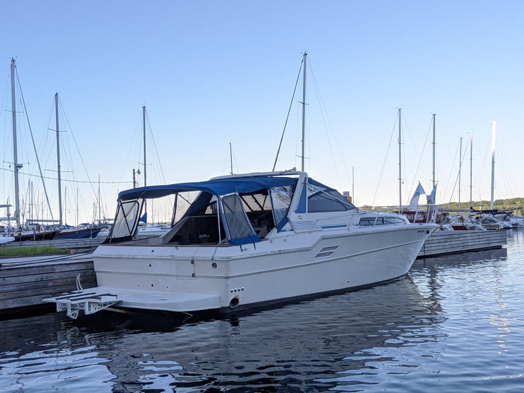 She looks fantastic in the water. By the end of the summer she will have her new bimini and the cockpit will be basically done.