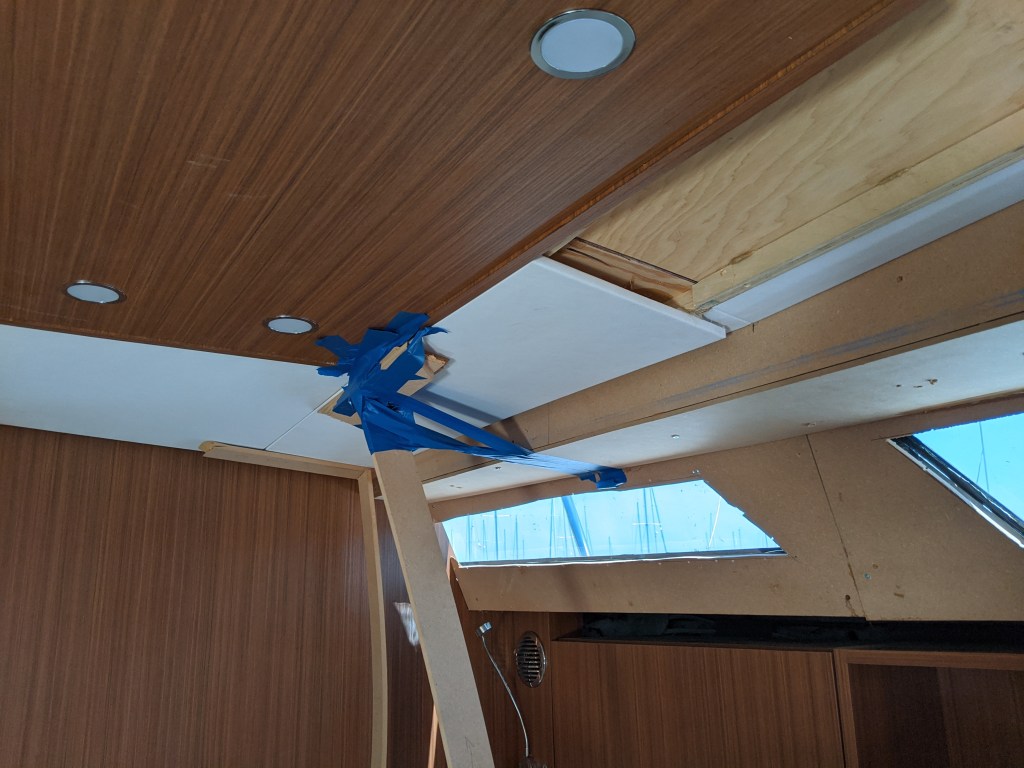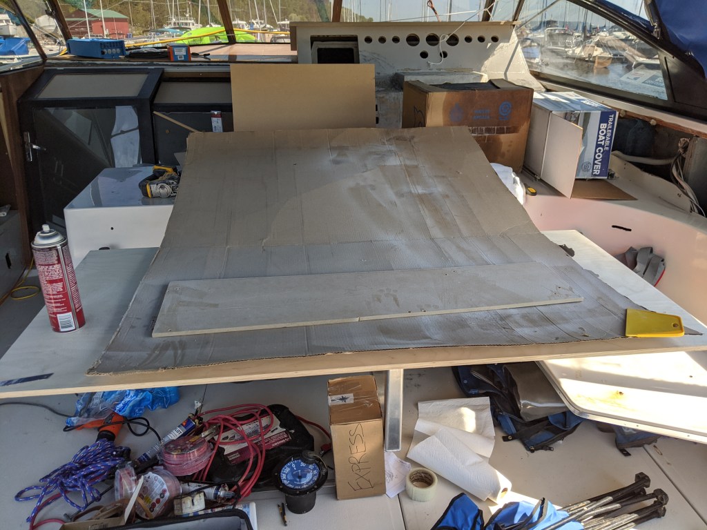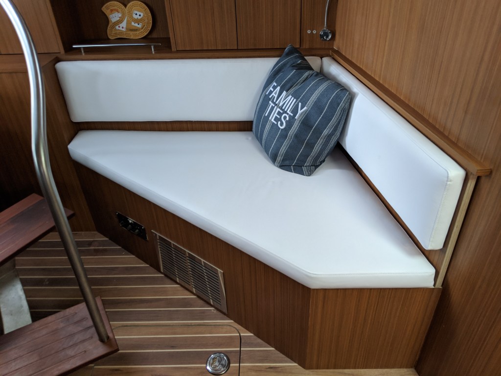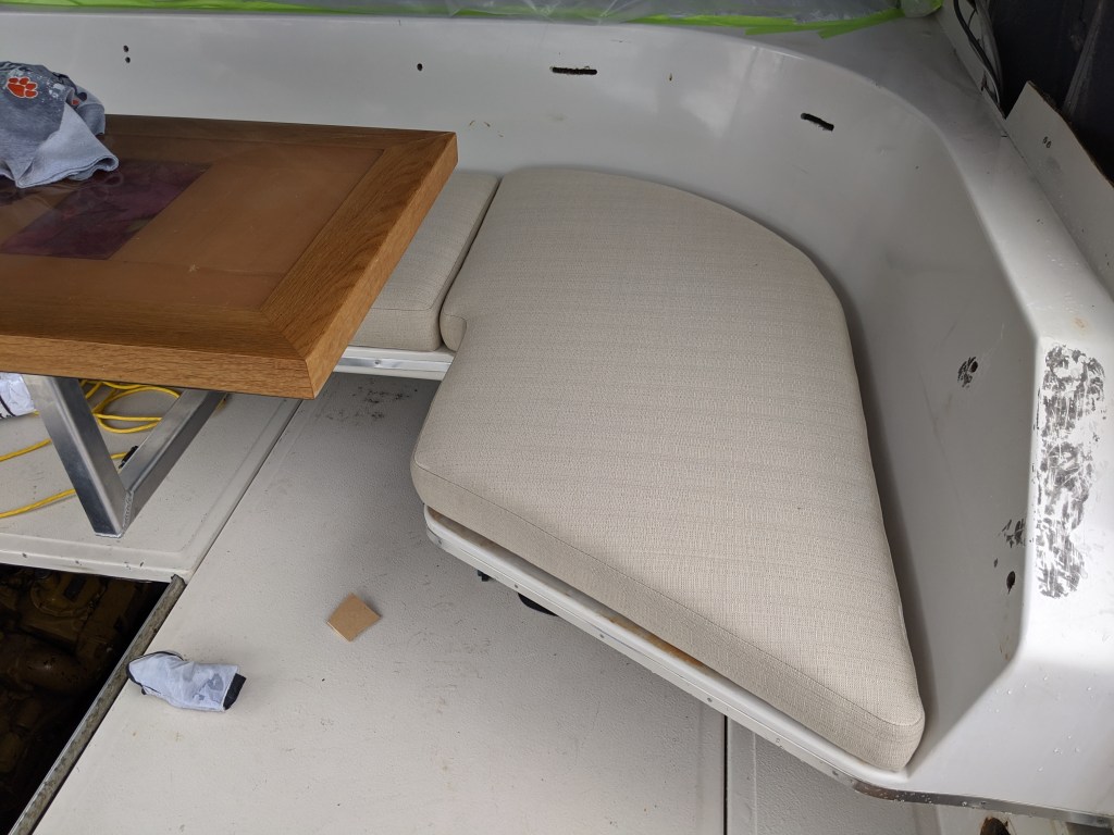 We were also able to install the cushions for what we are going to call the reading nook by the stairs. This could also serve as a bed for someone that we don’t want to come back to the boat.