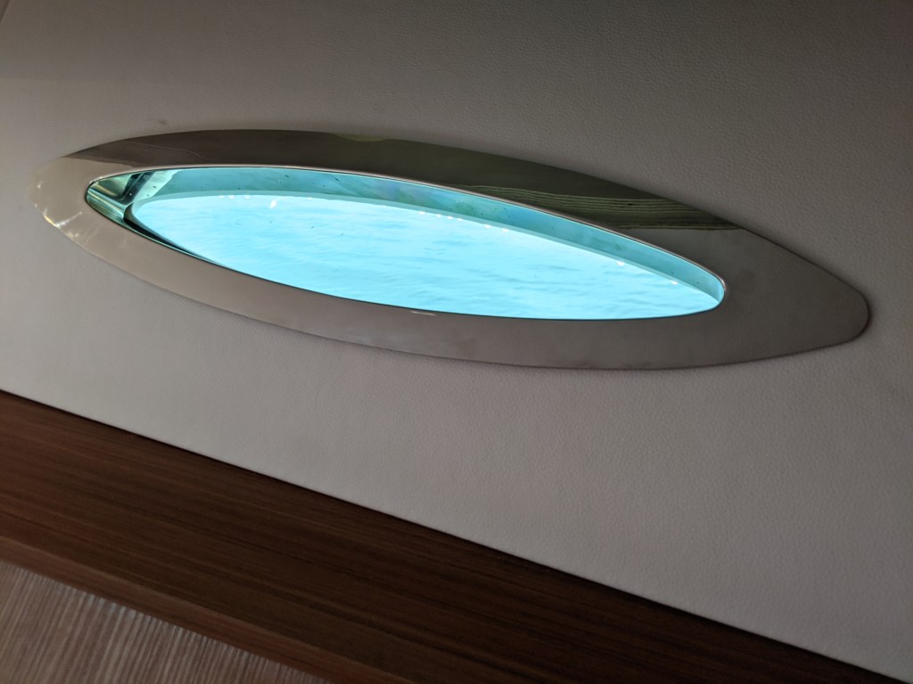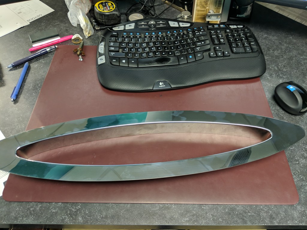I also had an oval trim sample made for the v-berth windows. This is made from mirrored stainless.