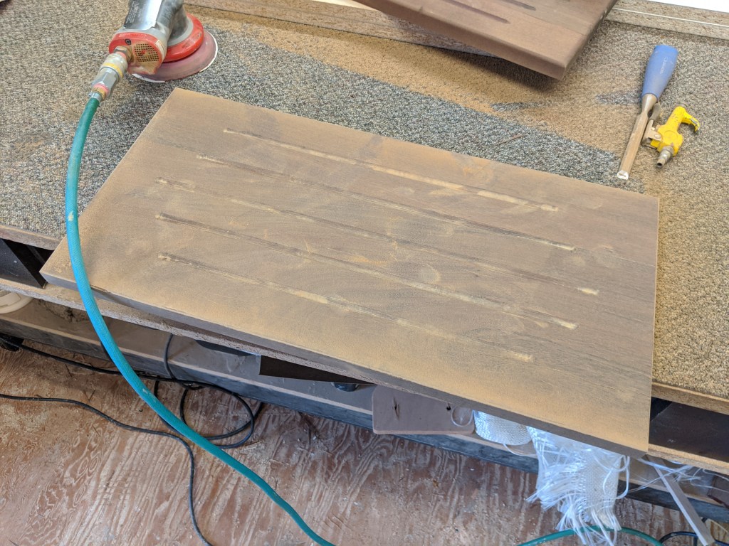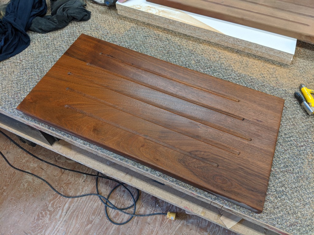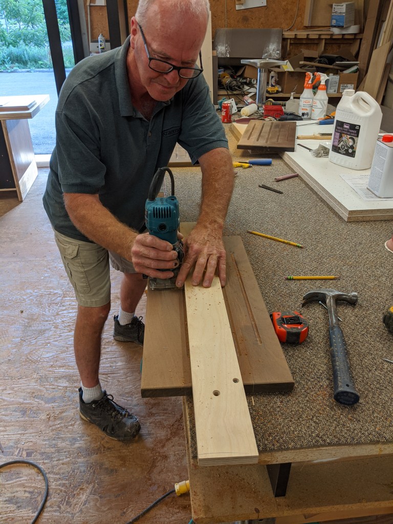 This past week Donald finished off the Ipe treads for the stairs. In this photo he is adding some fluting to the surface.