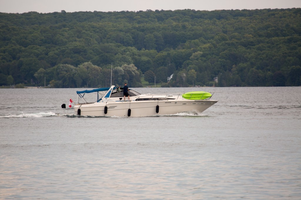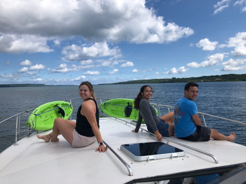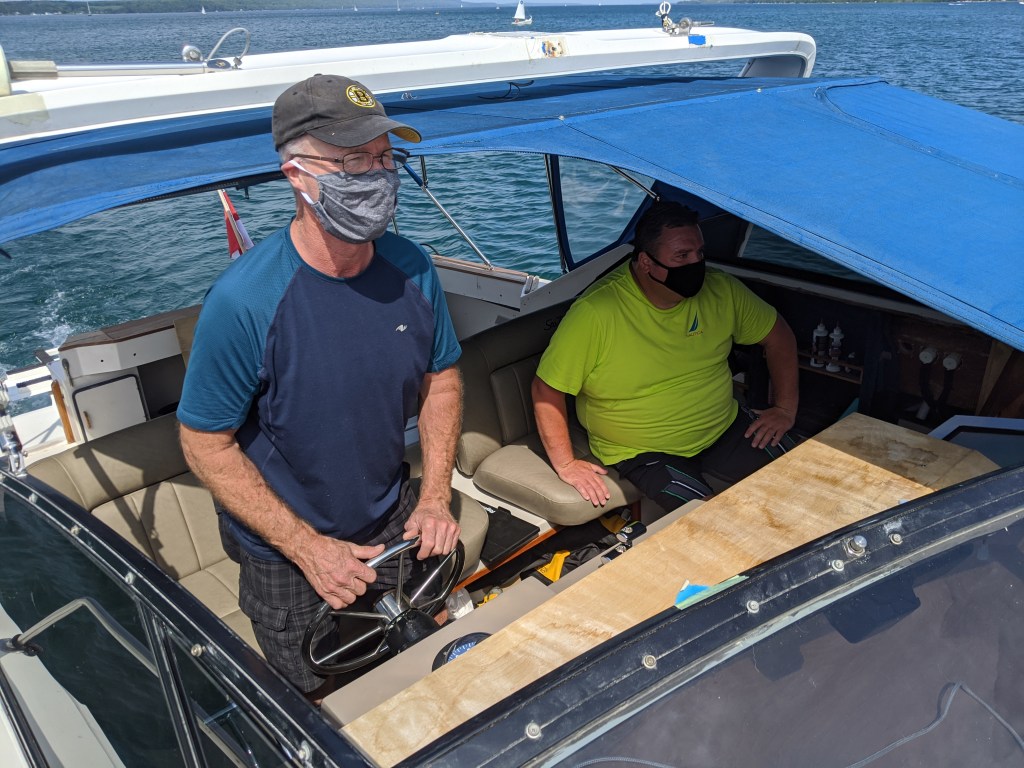 Luckily Cam was from the area and was available for a lesson. It was a great day to be out on the water. Donald had his first experience working with these huge twin inboard engines.