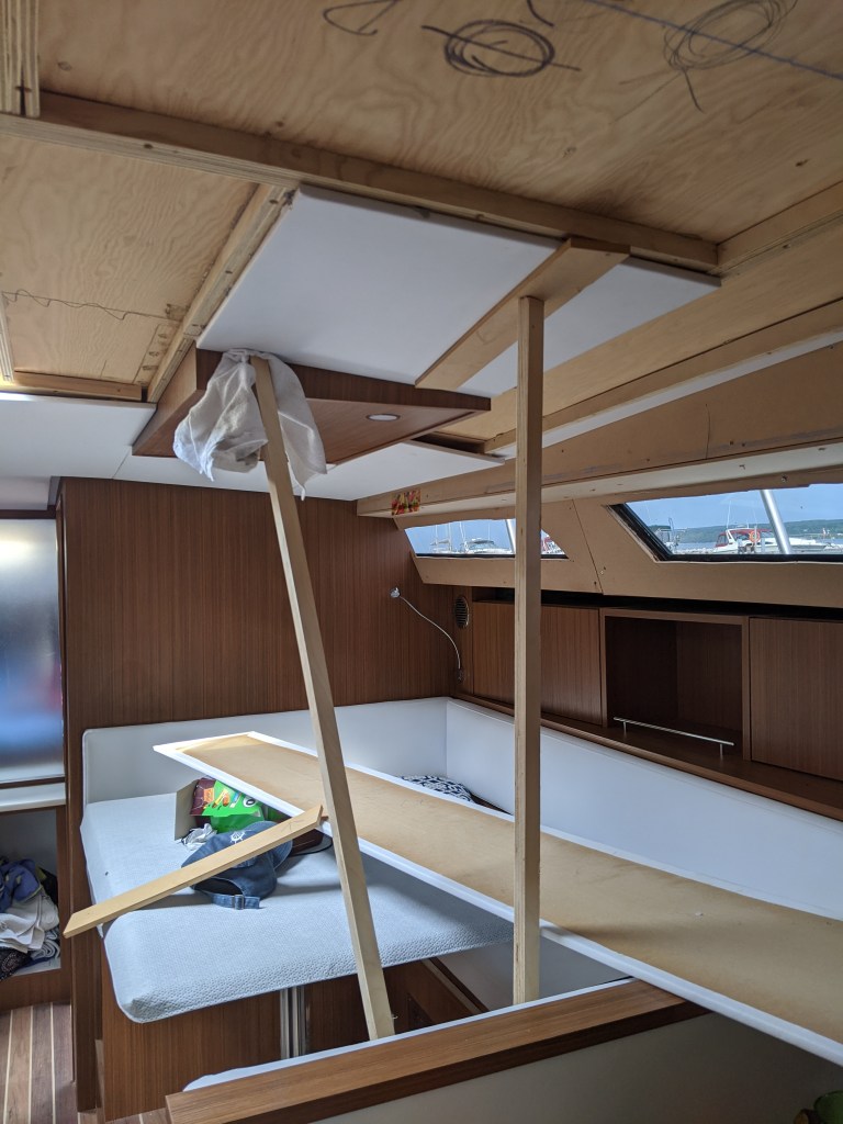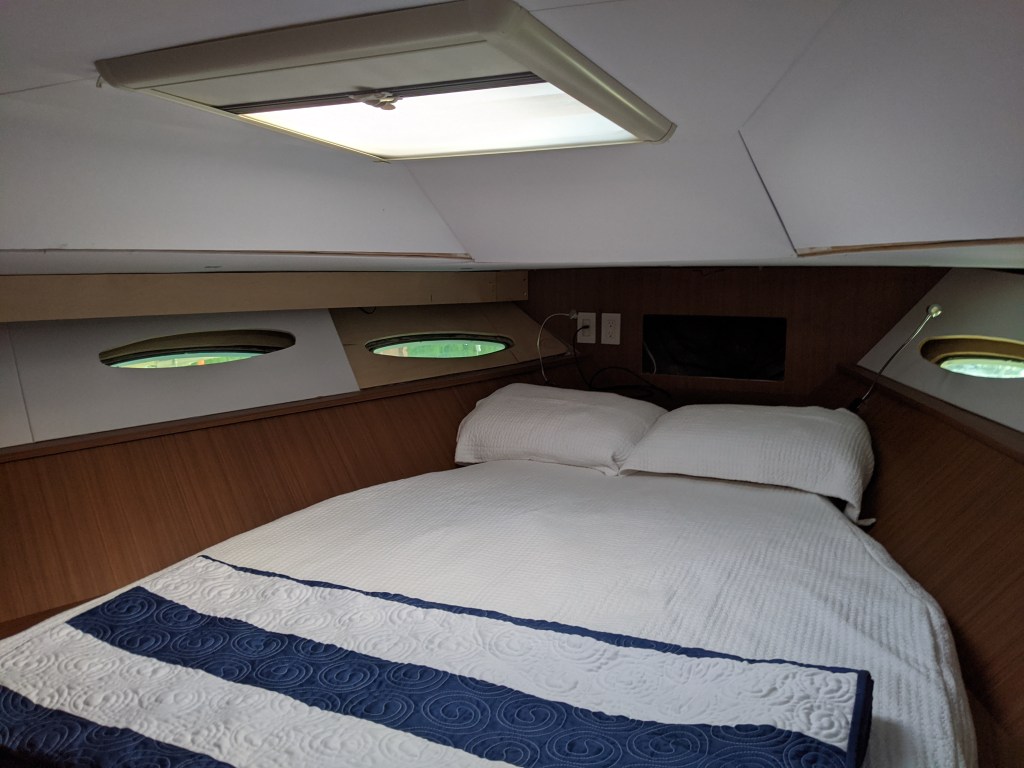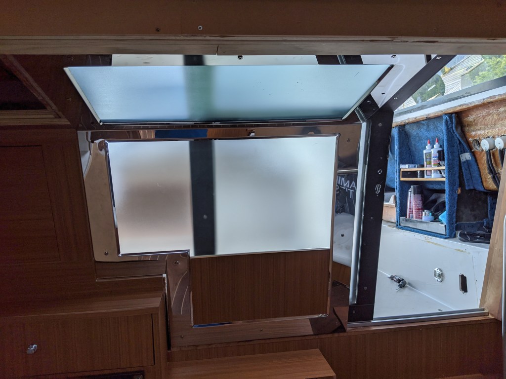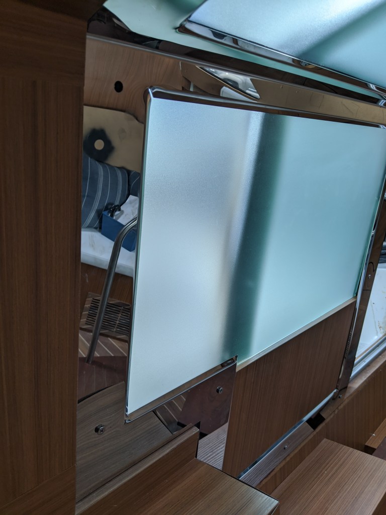We were able to get a bit of work done as well. We finally got a couple of the hatch screens delivered to us and installed the one in the v-berth.