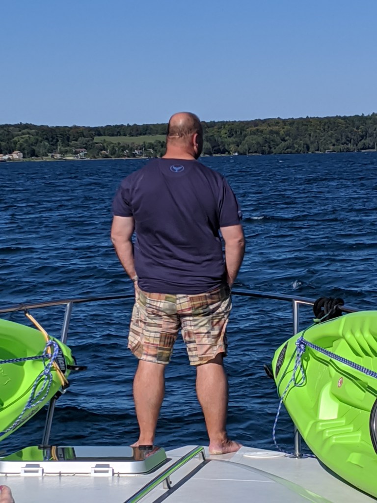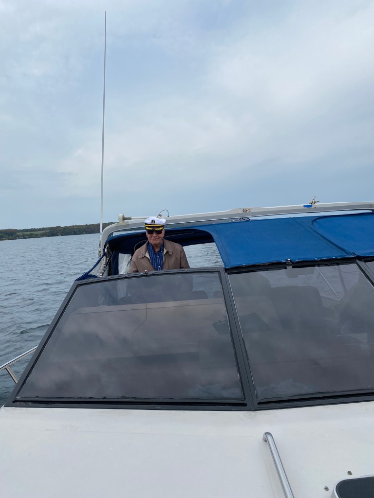 They are the only ones in my family that have any real boating experience. It was a little windy when we were docking but I managed to bring her in without damage to our property or my ego. It still chokes me up a bit thinking that my big brother was impressed with how I handled the boat….