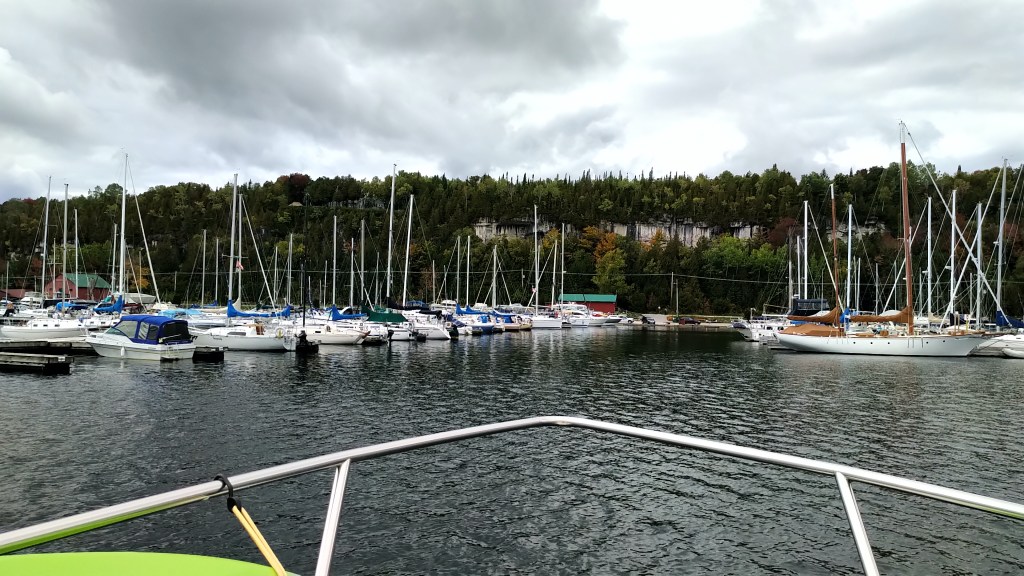 Erin and Giles came to Wiarton a few hours after Jim and Sue left … so we went out again. It was great getting the docking practice in.