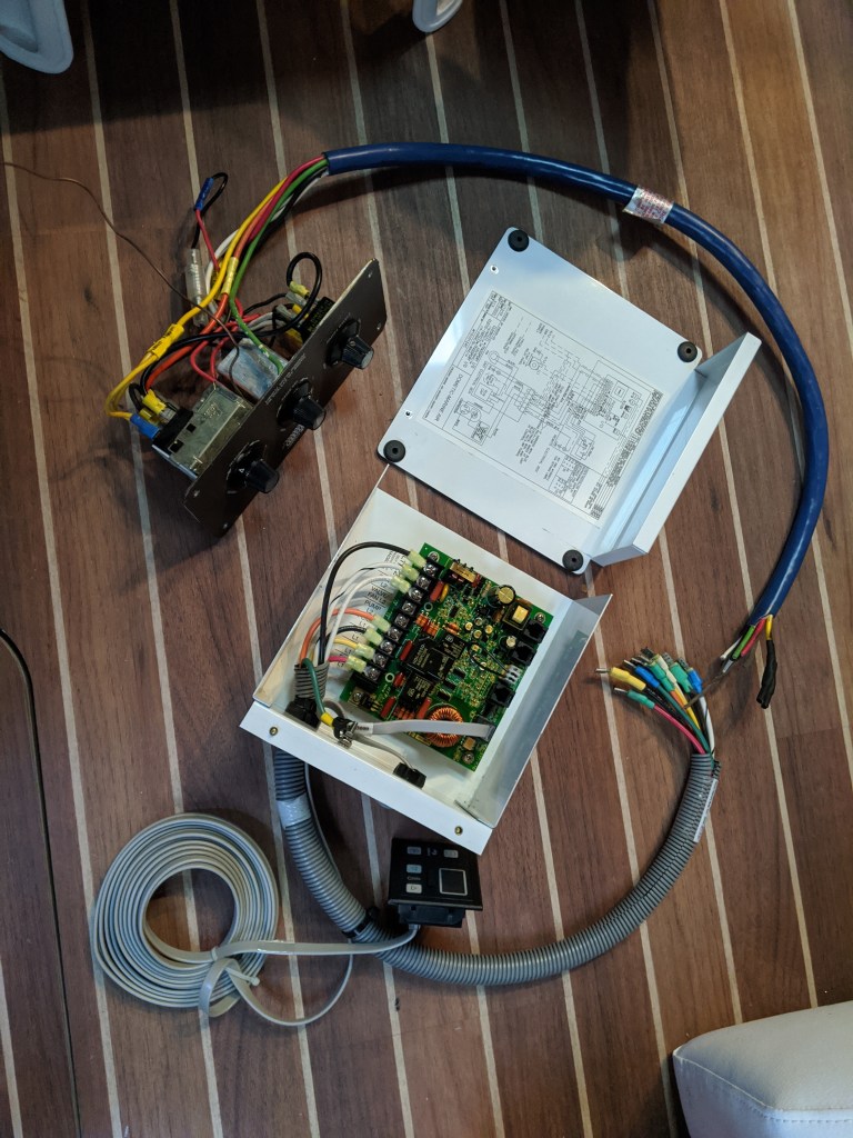 The switches on the lower left are way more complicated so I figured I would get to those next weekend. The techs at the marina will remove the steering wheel, gear/throttle controls and the ignition switches after they haul her out. It would make it pretty difficult to get her over to the lift without them … plus I don’t have a clue how to do it.
