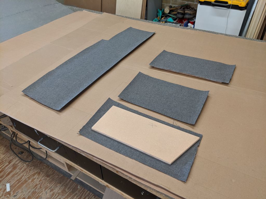 In the shop I wrapped the panels that will be covering the dash area. The fabric we chose is by Sunbrella and is dark so that it won’t reflect light into the windshield.