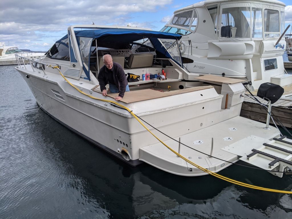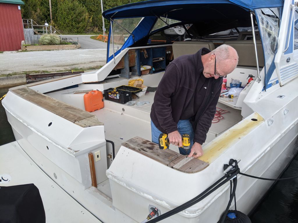 The rest of the time we cleaned out the cockpit entirely and brought back the seats to store in our shop for this winter. We didn’t want them to be in the way while the marina was working on the boat.
