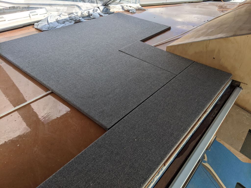 Since the helm still has to be finished we didn’t glue them in place. This will be done in the spring. For now we are storing them on board. We also fitted the panels that will finish off the helm and then dropped them off at a local upholsterer.