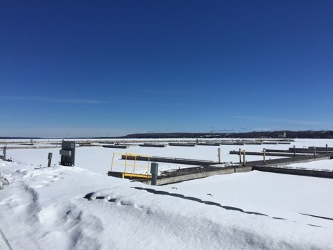 … a month later the ice is out of the bay and the docks are ready for boats.