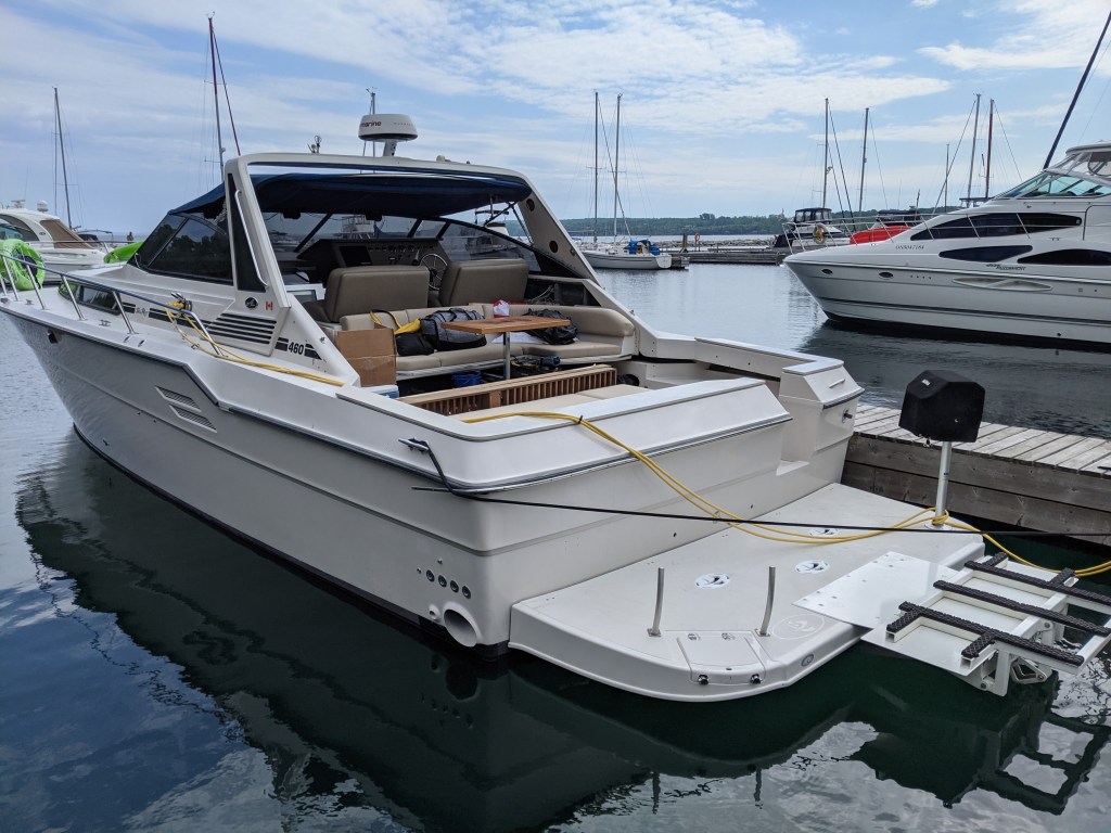 1. I have to say I love this boat. I had a 1988 460 Express with the Stewart Stevenson Detroit 692s. I love this boat and I wish I still had it. One of the best designs ever. Really enjoy watching the renovation!