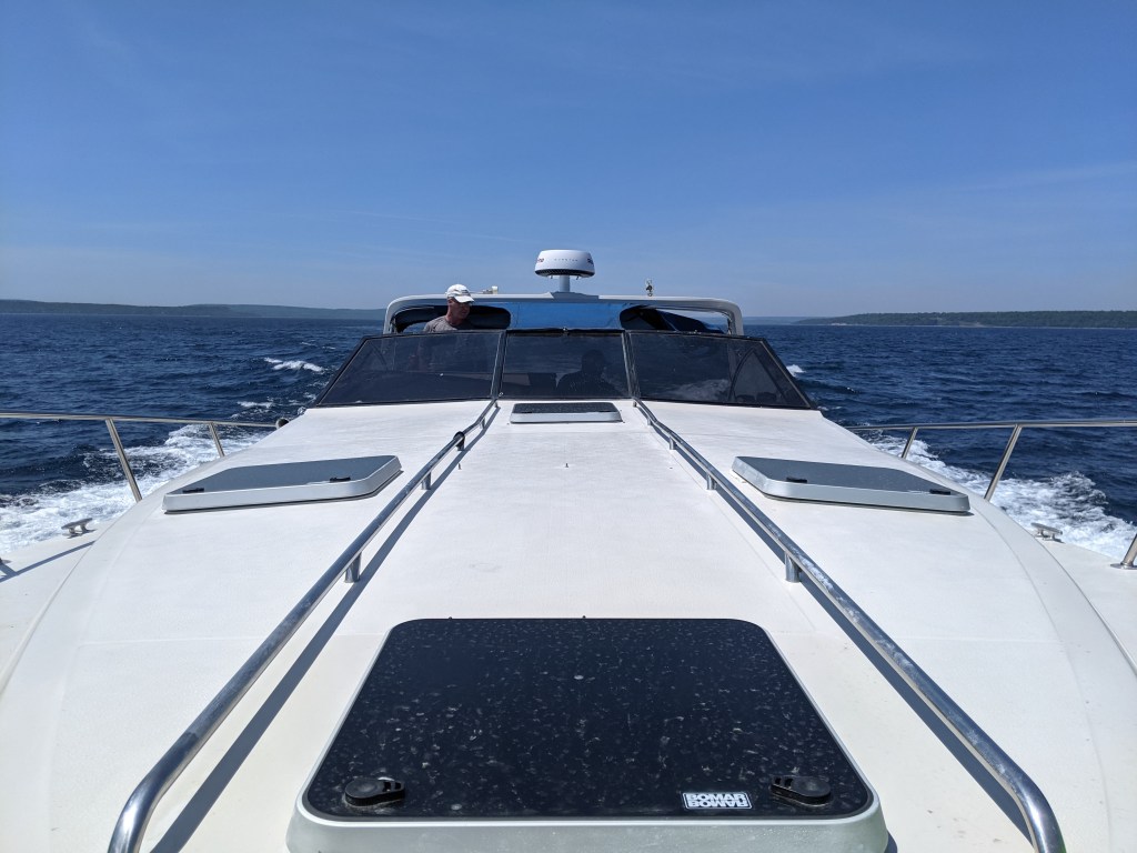 I kept looking to Jeff to see how he thought the engines were doing and he kept reassuring me that they were doing very well. So well in fact that we hit a top speed of 20 knots which we weren’t expecting at all. The funny thing about running this boat at 20 knots is that you can almost see the fuel gauges move. We were on a tight schedule so I kept the speed up. It was also good to put her to the test … and she passed with flying colours.