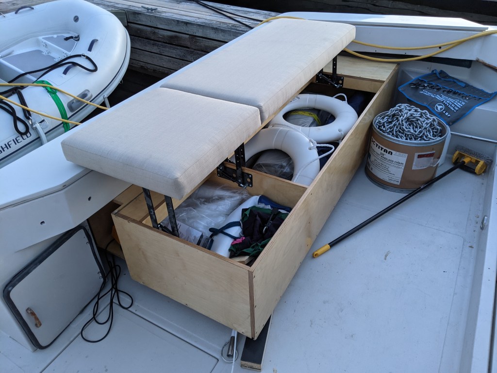 Eventually the cockpit walls will be covered with panels as will the face of the storage unit. I still have to fit the area around the seats to make a fixed seat cushion.